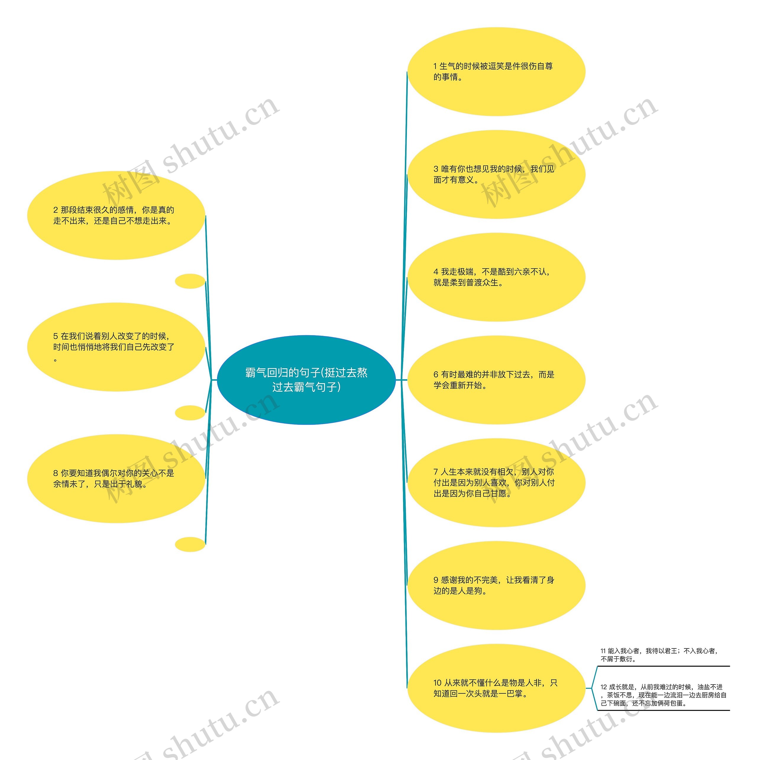 树图思维导图提供《霸气回归的句子(挺过去熬过去霸气句子)》在线思维导图免费制作,点击“编辑”按钮,可对《霸气回归的句子(挺过去熬过去霸气句子)》进行在线思维导图编辑,本思维导图属于思维导图模板主题,文件编号是:455fcece1c413c6e3123be8ad922c864