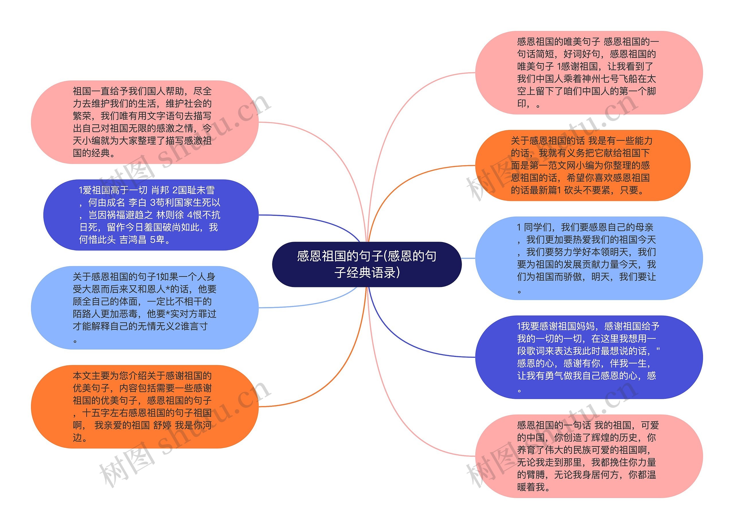 感恩祖国的一句话 我的祖国,可爱的中国,你创造了辉煌的历史,你养育了伟大的民族可爱的祖国啊,无论我走到那里,我都挽住你力量的臂膊,无论我身居何方,你都温暖着我。