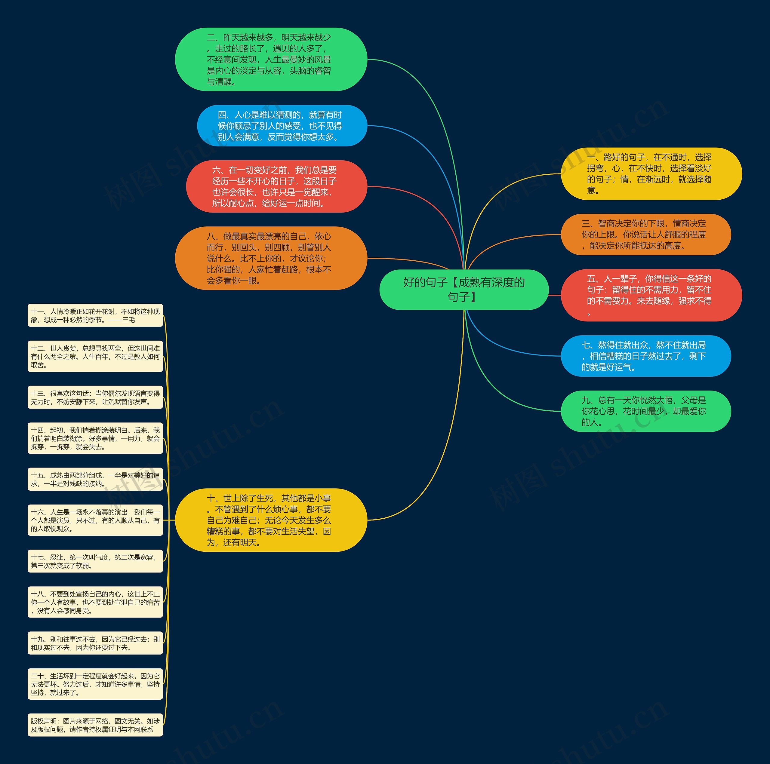 树图思维导图提供《好的句子【成熟有深度的句子】》在线思维导图免费制作,点击“编辑”按钮,可对《好的句子【成熟有深度的句子】》进行在线思维导图编辑,本思维导图属于思维导图模板主题,文件编号是:e4beb38b20e9532acefe7b17effdcc84