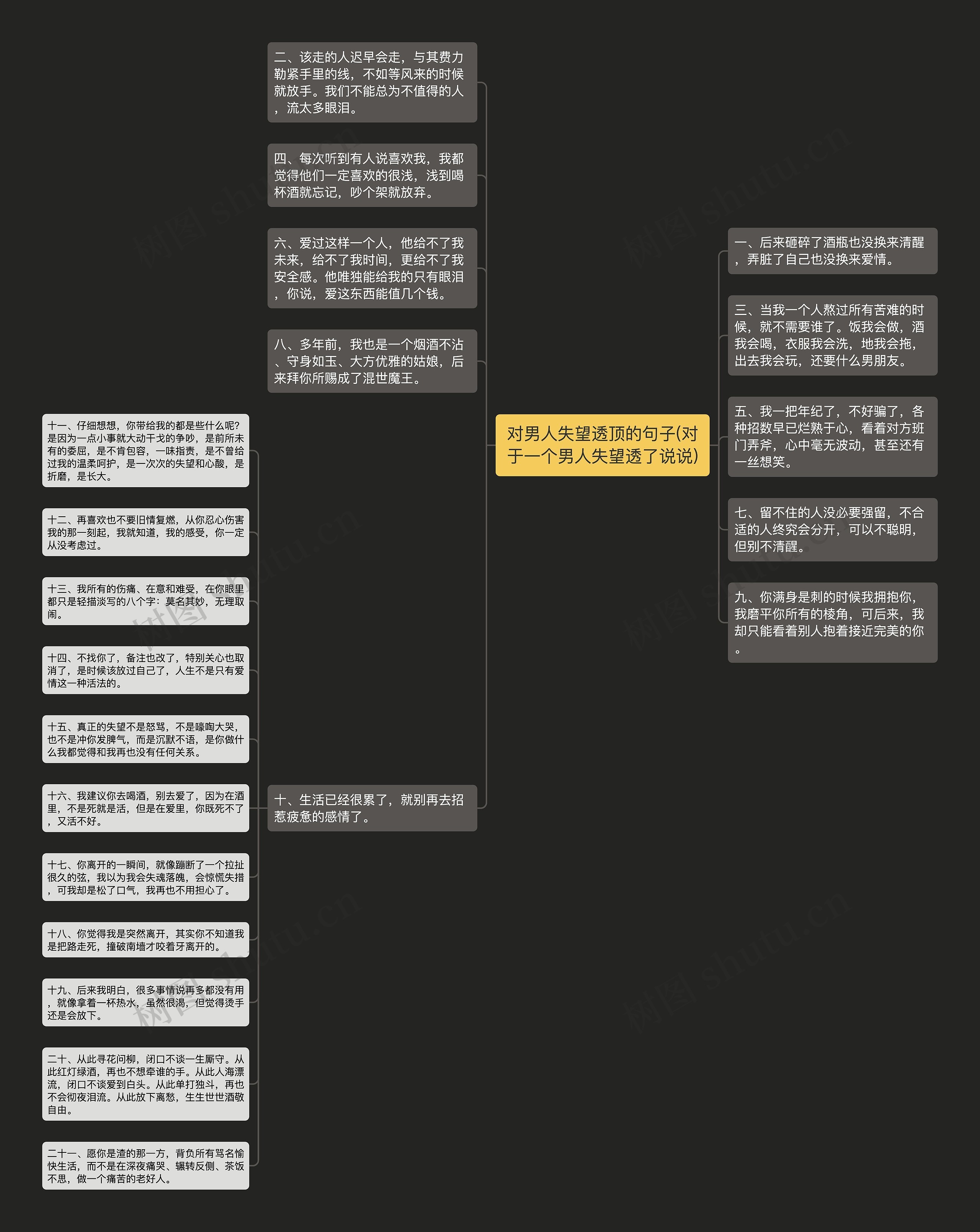 树图思维导图提供《对男人失望透顶的句子(对于一个男人失望透了说说)》在线思维导图免费制作,点击“编辑”按钮,可对《对男人失望透顶的句子(对于一个男人失望透了说说)》进行在线思维导图编辑,本思维导图属于思维导图模板主题,文件编号是:39ca2fdfc3aa3d66d97033e9ca5a9906
