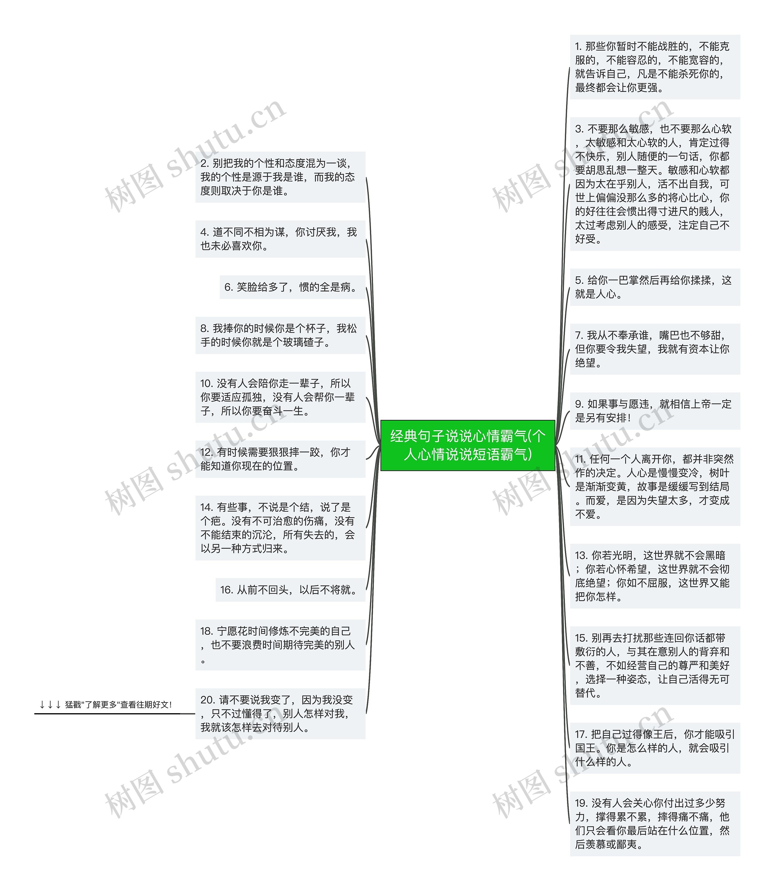 1. 那些你暂时不能战胜的,不能克服的,不能容忍的,不能宽容的,就告诉自己,凡是不能杀死你的,最终都会让你更强。