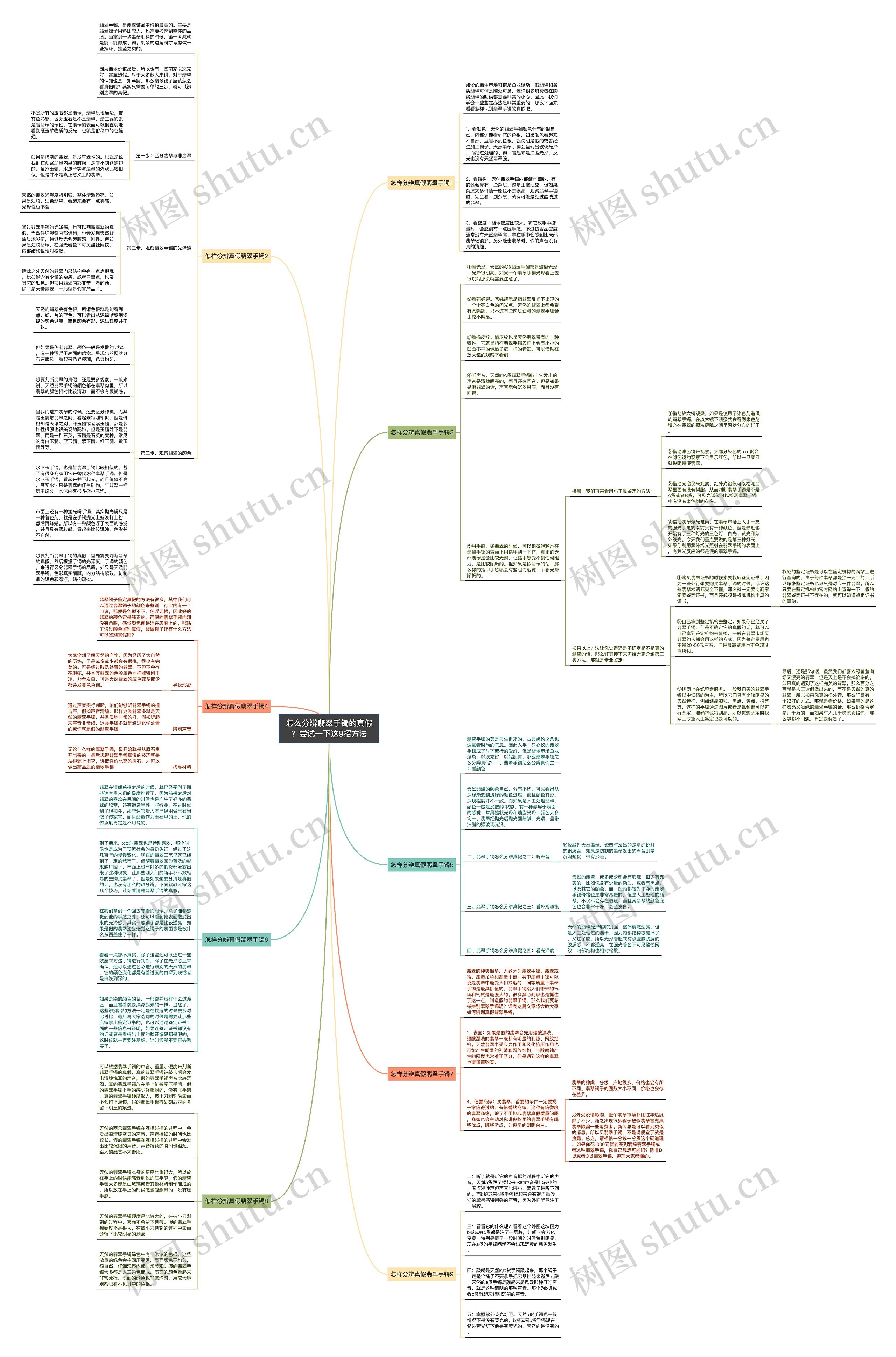 怎么分辨翡翠手镯的真假?尝试一下这9招方法思维导图