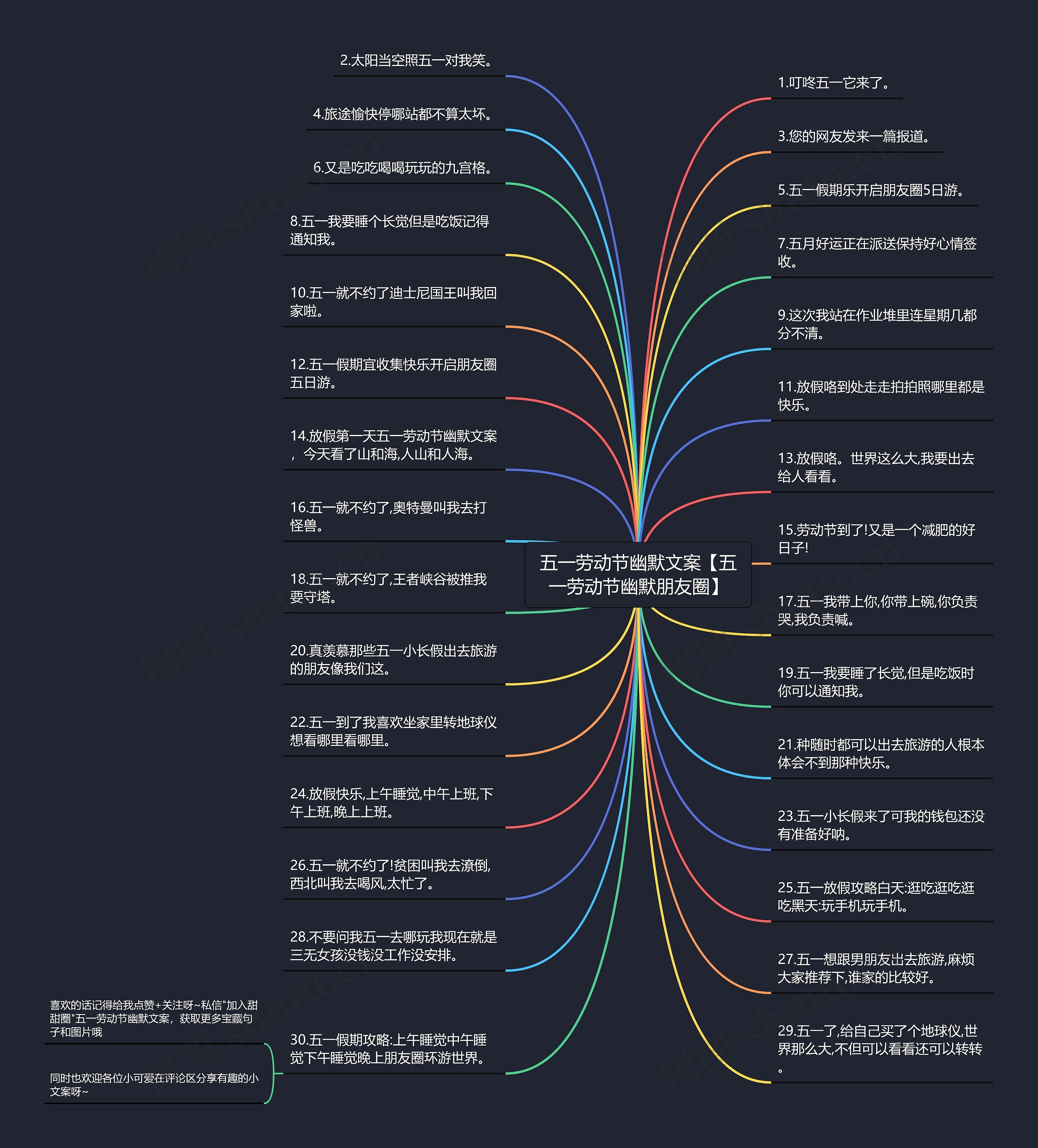 树图思维导图提供《五一劳动节幽默文案【五一劳动节幽默朋友圈】》在线思维导图免费制作,点击“编辑”按钮,可对《五一劳动节幽默文案【五一劳动节幽默朋友圈】》进行在线思维导图编辑,本思维导图属于思维导图模板主题,文件编号是:4aa78bd788b872ef6e81f26db86323fc