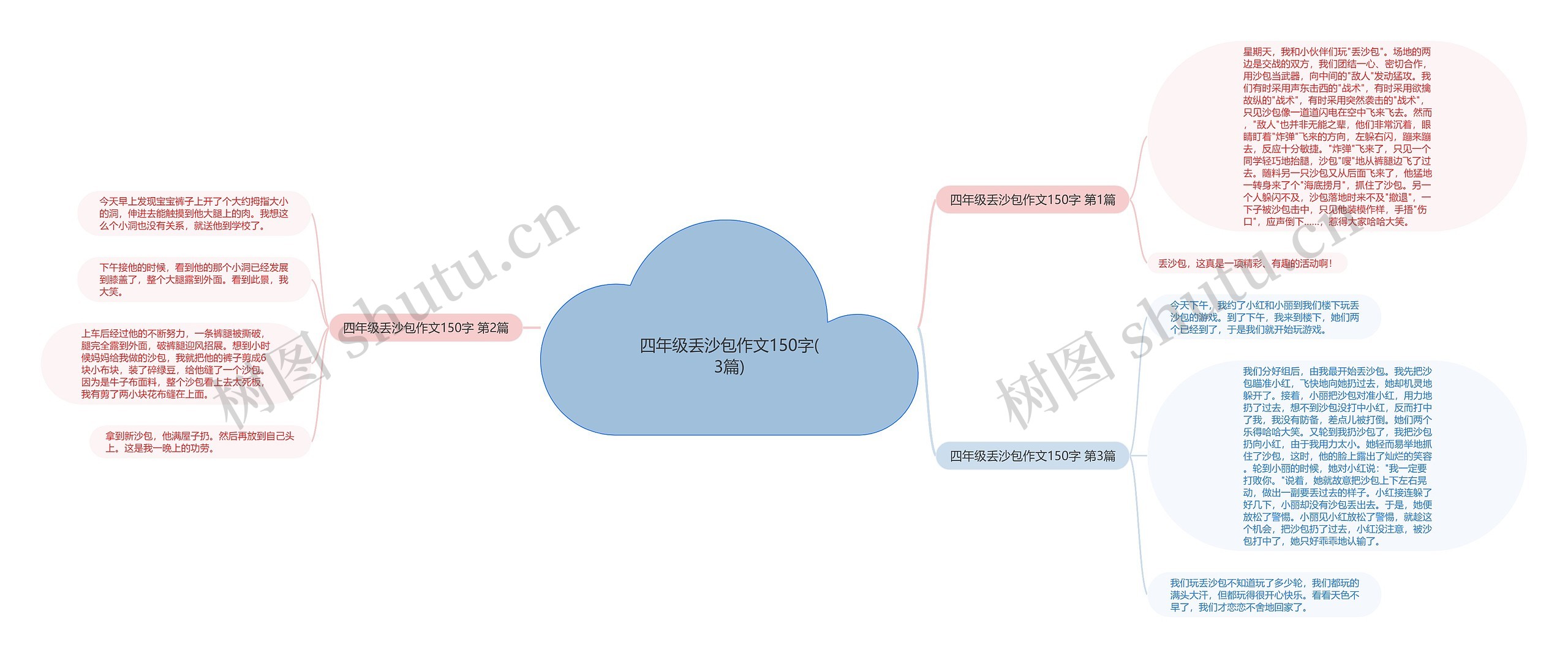 树图思维导图提供《四年级丢沙包作文150字(3篇)》在线思维导图免费制作,点击“编辑”按钮,可对《四年级丢沙包作文150字(3篇)》进行在线思维导图编辑,本思维导图属于思维导图模板主题,文件编号是:7be3272e48bf690e69492a20694f821e