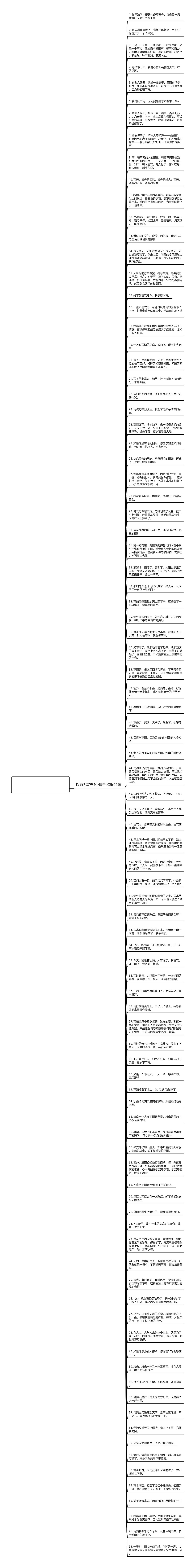 91. 雨滴就像千万个伞兵,从空中跳下来,安全地降落在地面上。