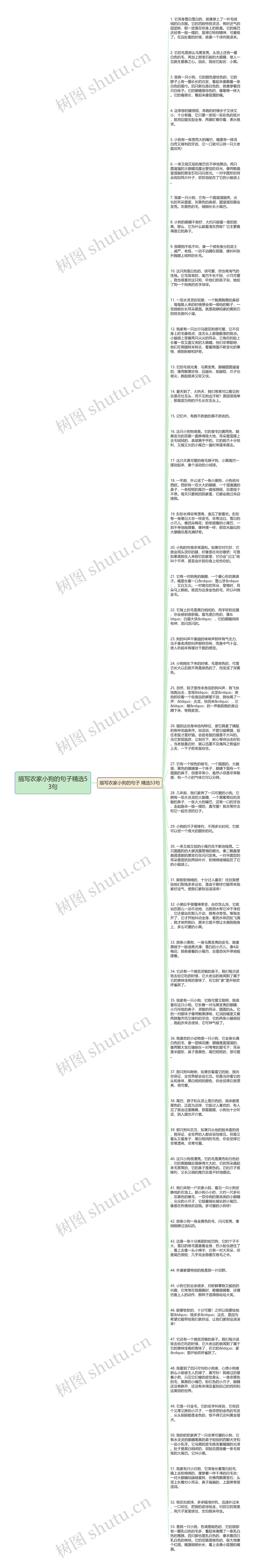 53. 是我一只小狗,色调是咖色的,它的颈部有一圈乳白色的毛多,看起来像围了一条乳白色的围脖。四只脚也是乳白色的,像衣着四只乳白色的棉袜。它的双眼是咖色的,极大地像个红提。嘴唇细细长长,看上去像小狐狸的嘴唇。