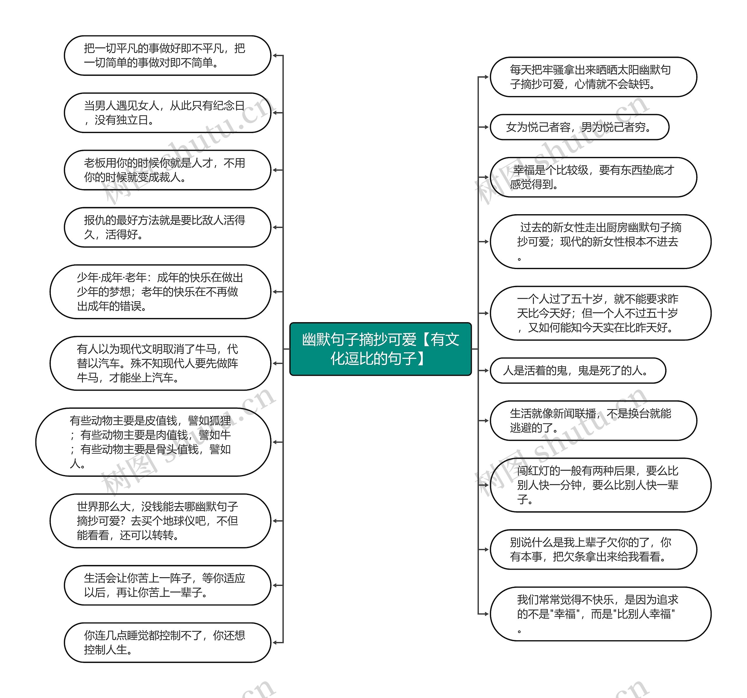 树图思维导图提供《幽默句子摘抄可爱【有文化逗比的句子】》在线思维导图免费制作,点击“编辑”按钮,可对《幽默句子摘抄可爱【有文化逗比的句子】》进行在线思维导图编辑,本思维导图属于思维导图模板主题,文件编号是:17f775f0e463505e168ca1f0916f17ca