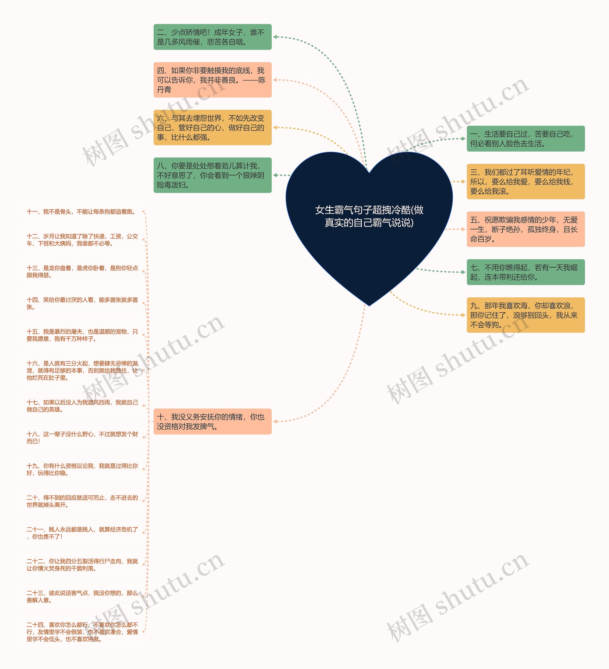 树图思维导图提供《女生霸气句子超拽冷酷(做真实的自己霸气说说)》在线思维导图免费制作,点击“编辑”按钮,可对《女生霸气句子超拽冷酷(做真实的自己霸气说说)》进行在线思维导图编辑,本思维导图属于思维导图模板主题,文件编号是:ec3cadbb1fc37883f0177865c9dab52e