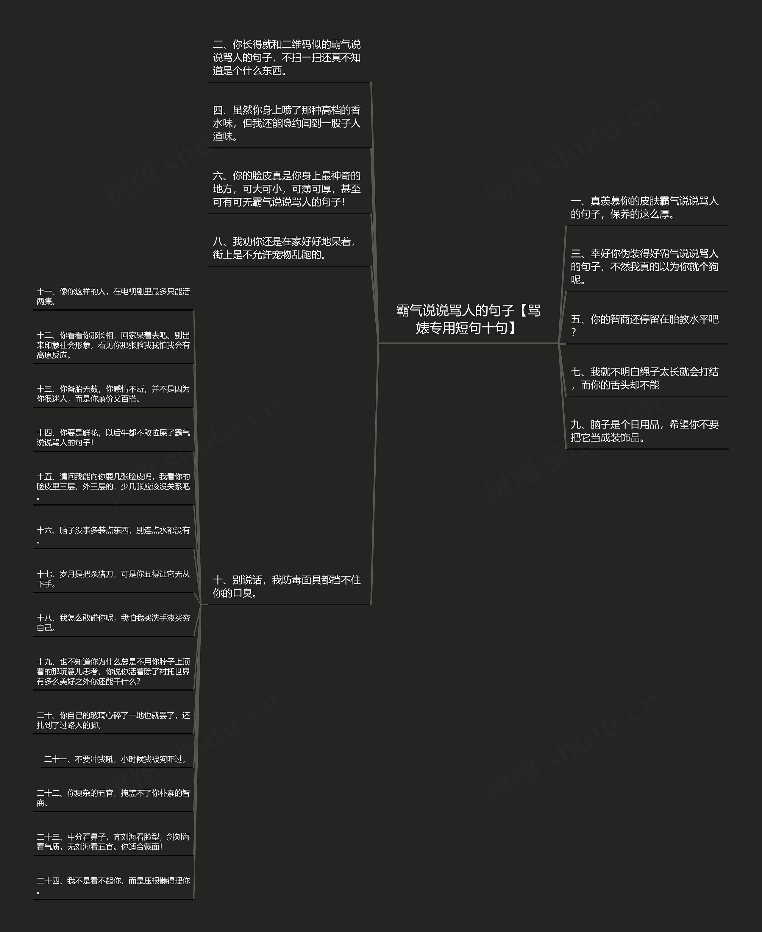 树图思维导图提供《霸气说说骂人的句子【骂婊专用短句十句】》在线思维导图免费制作,点击“编辑”按钮,可对《霸气说说骂人的句子【骂婊专用短句十句】》进行在线思维导图编辑,本思维导图属于思维导图模板主题,文件编号是:ec0e8c778a43fa494d351c9bc9ee3cb8