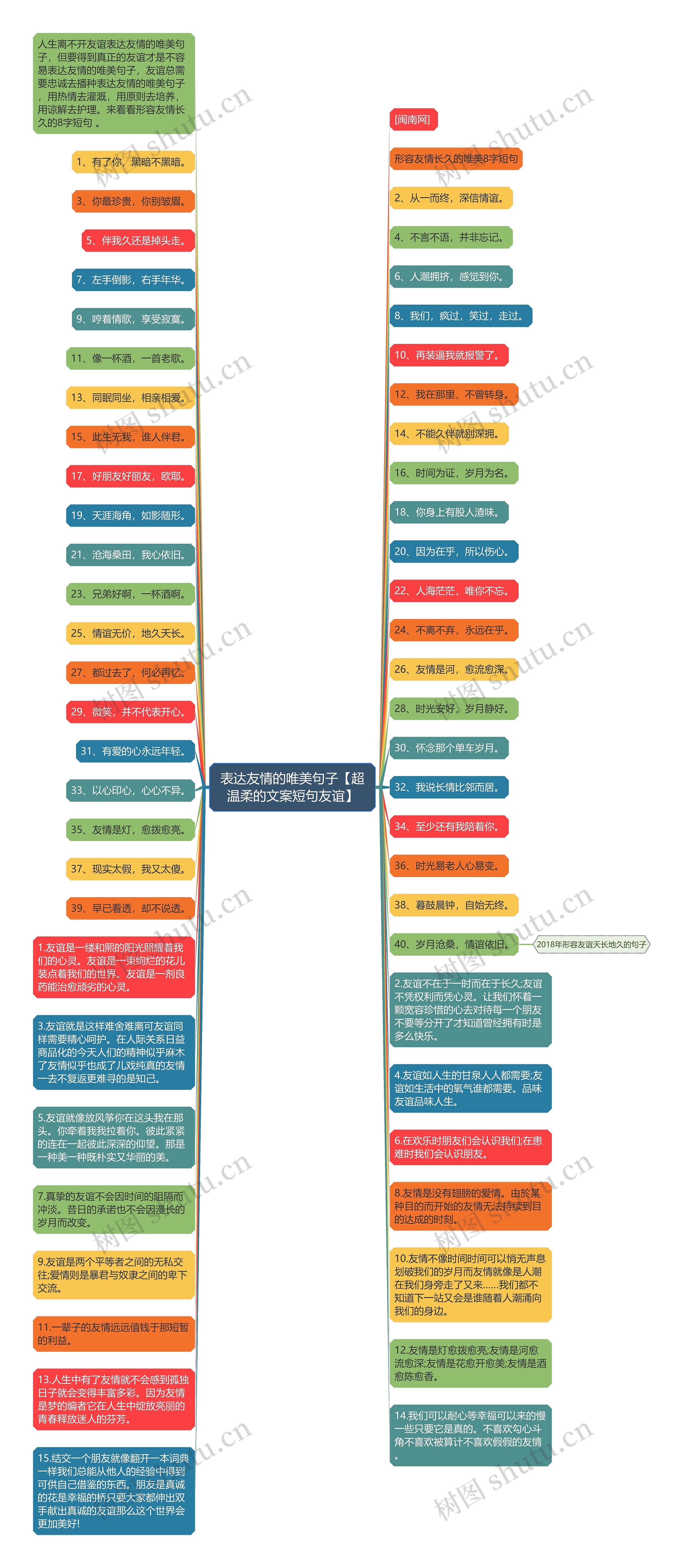 1.友谊是一缕和熙的阳光照耀着我们的心灵。友谊是一束绚烂的花儿装点着我们的世界。友谊是一剂良药能治愈顽劣的心灵。