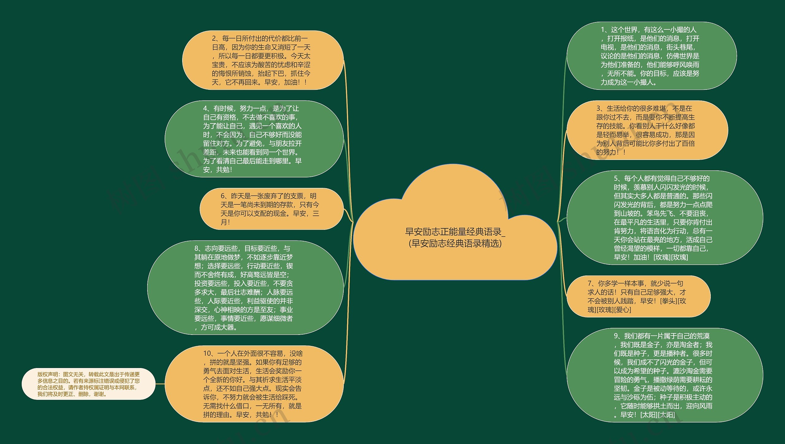 9、我们都有一片属于自己的荒漠,我们既是金子,亦是淘金者;我们既是种子,更是播种者。很多时候,我们成不了闪光的金子,但可以成为希望的种子。漉沙淘金需要冒险的勇气,播撒绿荫需要耕耘的坚韧。金子是被动等待的,或许永远与沙砾为伍;种子是积极主动的,它随时能够拱土而出,迎向风雨。早安![太阳][太阳]