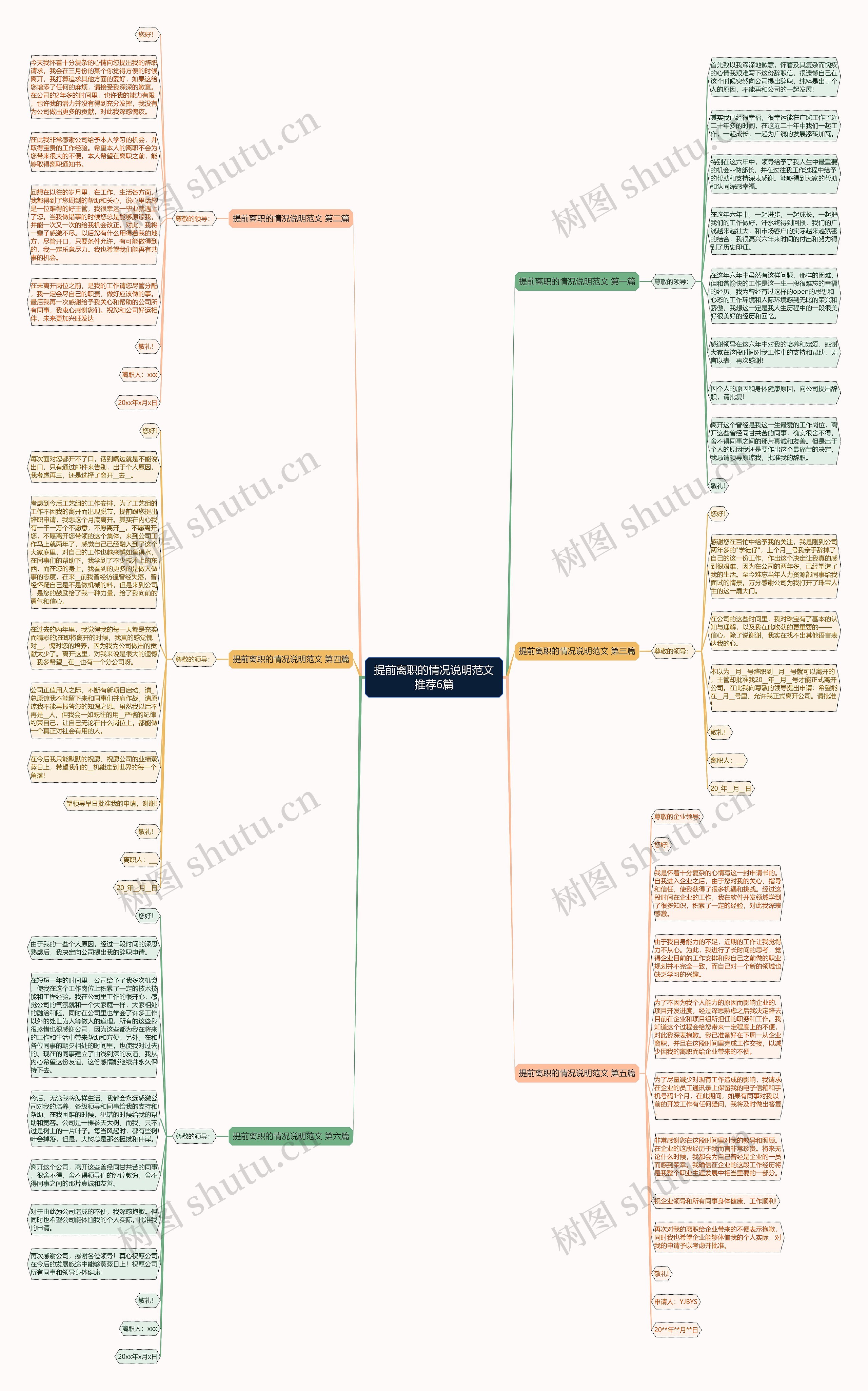 树图思维导图提供《提前离职的情况说明范文推荐6篇》在线思维导图免费制作,点击“编辑”按钮,可对《提前离职的情况说明范文推荐6篇》进行在线思维导图编辑,本思维导图属于思维导图模板主题,文件编号是:7c8a0c1ea9ed9e5df0f792de419d7a1d