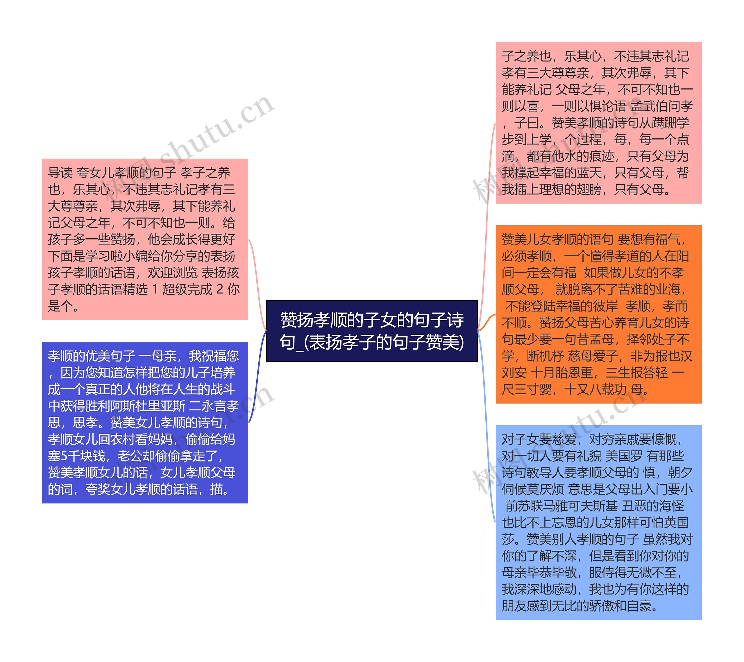 赞美儿女孝顺的语句 要想有福气,必须孝顺,一个懂得孝道的人在阳间一定会有福 如果做儿女的不孝顺父母, 就脱离不了苦难的业海, 不能登陆幸福的彼岸 孝顺,孝而不顺。赞扬父母苦心养育儿女的诗句最少要一句昔孟母,择邻处子不学,断机杼 慈母爱子,非为报也汉刘安 十月胎恩重,三生报答轻 一尺三寸婴,十又八载功 母。