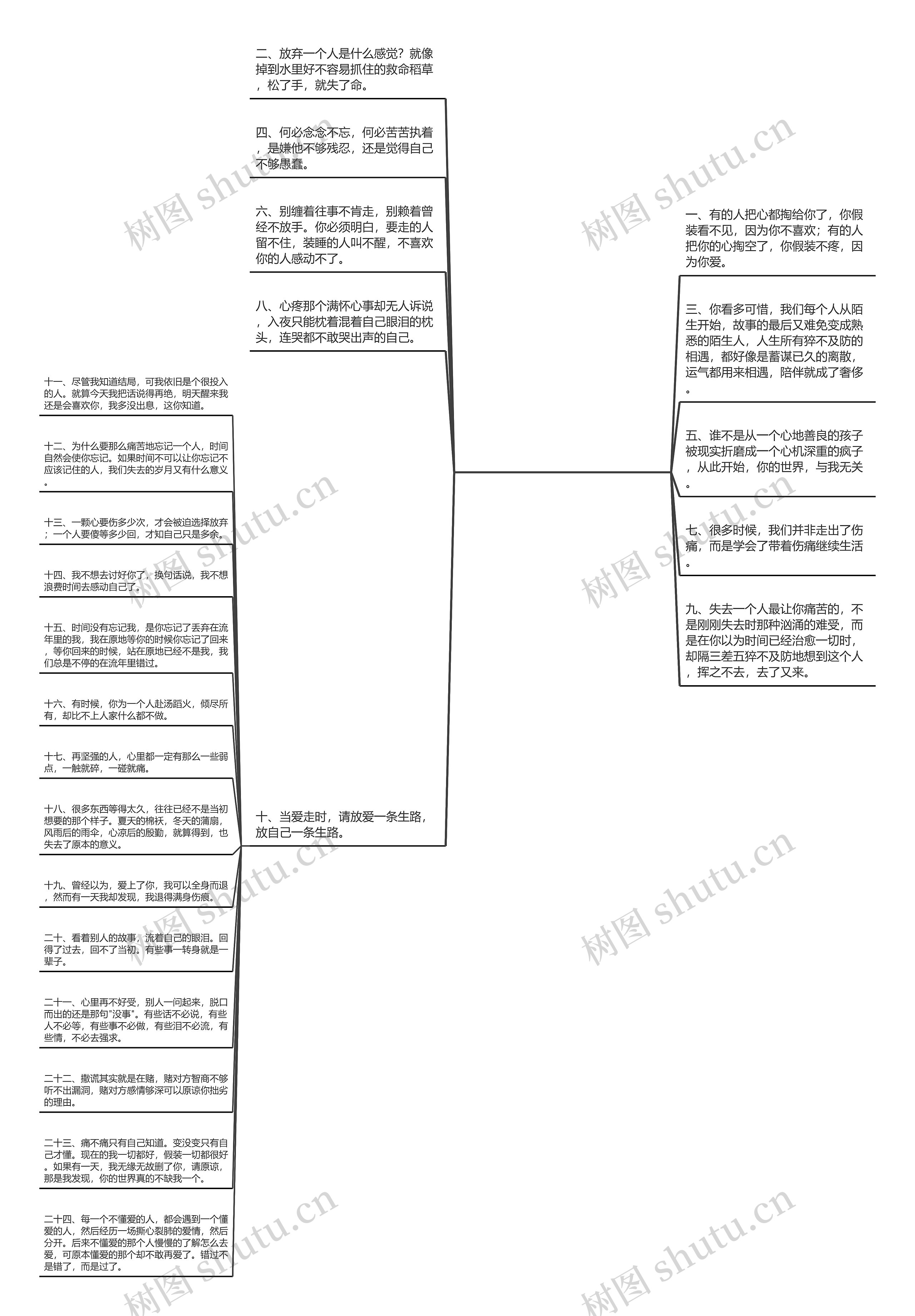 二十四、每一个不懂爱的人,都会遇到一个懂爱的人,然后经历一场撕心裂肺的爱情,然后分开。后来不懂爱的那个人慢慢的了解怎么去爱,可原本懂爱的那个却不敢再爱了。错过不是错了,而是过了。