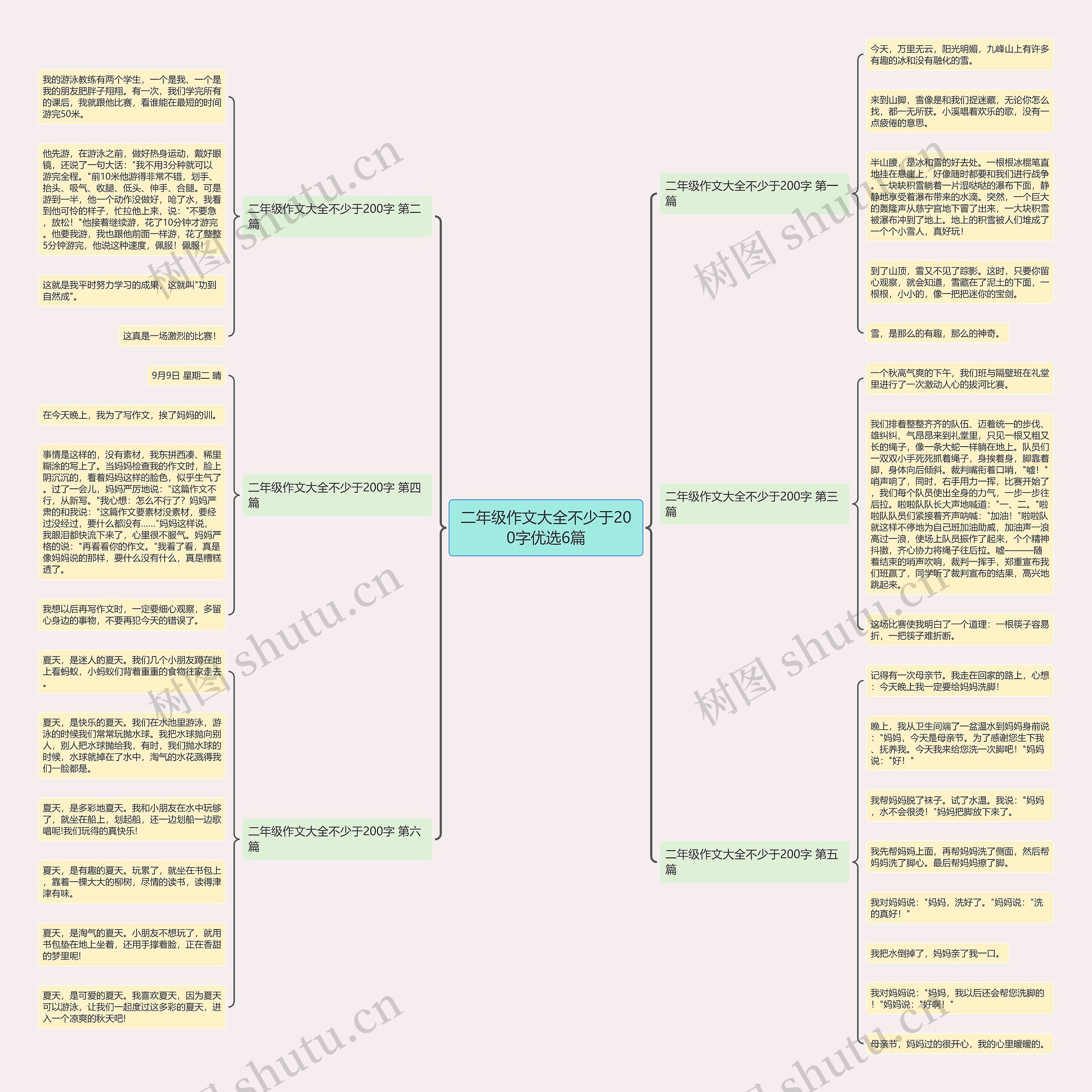 树图思维导图提供《二年级作文大全不少于200字优选6篇》在线思维导图免费制作,点击“编辑”按钮,可对《二年级作文大全不少于200字优选6篇》进行在线思维导图编辑,本思维导图属于思维导图模板主题,文件编号是:d63e3fe274ebec7d6a0b0f683adbb9b1