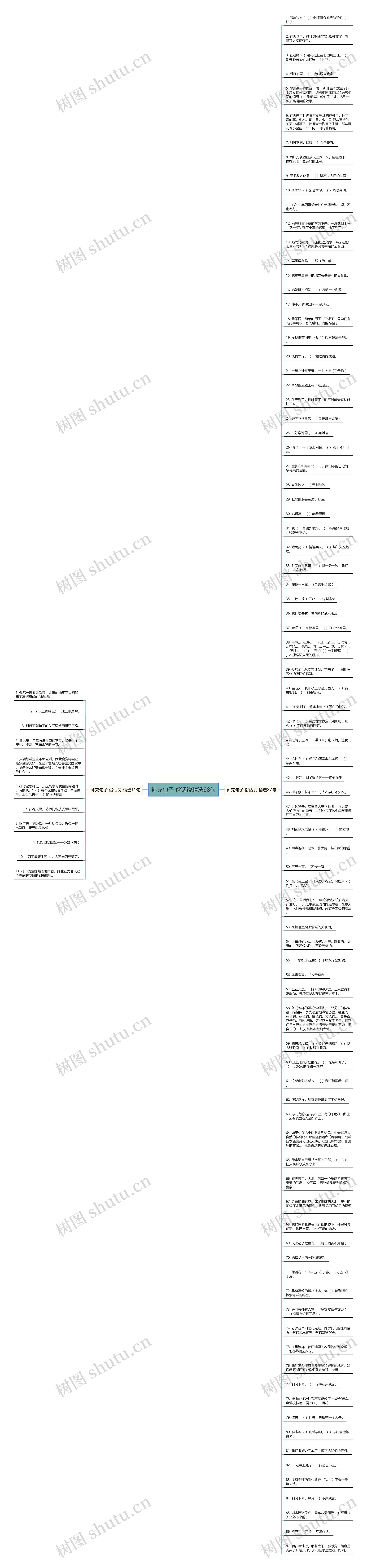 6. 春天来了!你看万紫千红的花开了,把可爱的草,树木,鸟,兽,虫,鱼 都从寒冷的冬天中叫醒了,使得大地恢复了生机。那些野花像小星星一样一闪一闪眨着眼睛。
