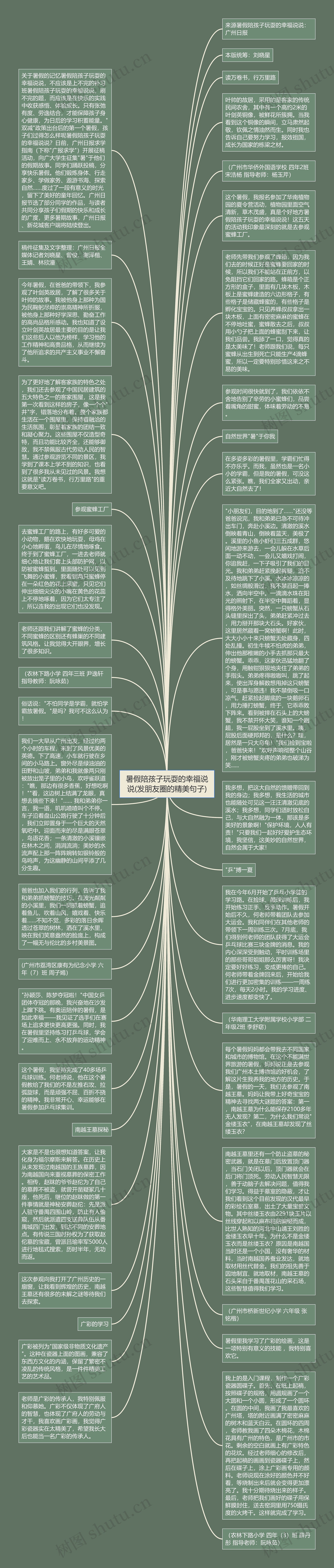 关于暑假的记忆暑假陪孩子玩耍的幸福说说,不应该是上不完的补习班暑假陪孩子玩耍的幸福说说,刷不完的题,而应该是在快乐的实践中收获感悟、体验成长。只有张弛有度、劳逸结合,才能保障孩子身心健康,为日后的学习积蓄能量。"双减"政策出台后的第一个暑假,孩子们过得怎么样呢暑假陪孩子玩耍的幸福说说?日前,广州日报求学指南(下称"广报求学")开展征稿活动,向广大学生征集"暑"于他们的假期故事。同学们踊跃投稿,分享快乐暑假。他们锻炼身体、行走家乡、学做家务、遨游书海、探索自然……度过了一段有意义的时光,留下了美好的童年回忆。广州日报节选了部分同学的作品,与读者共同分享孩子们假期的快乐和成长的广度,更多暑期故事,广州日报、新花城客户端将陆续登出。