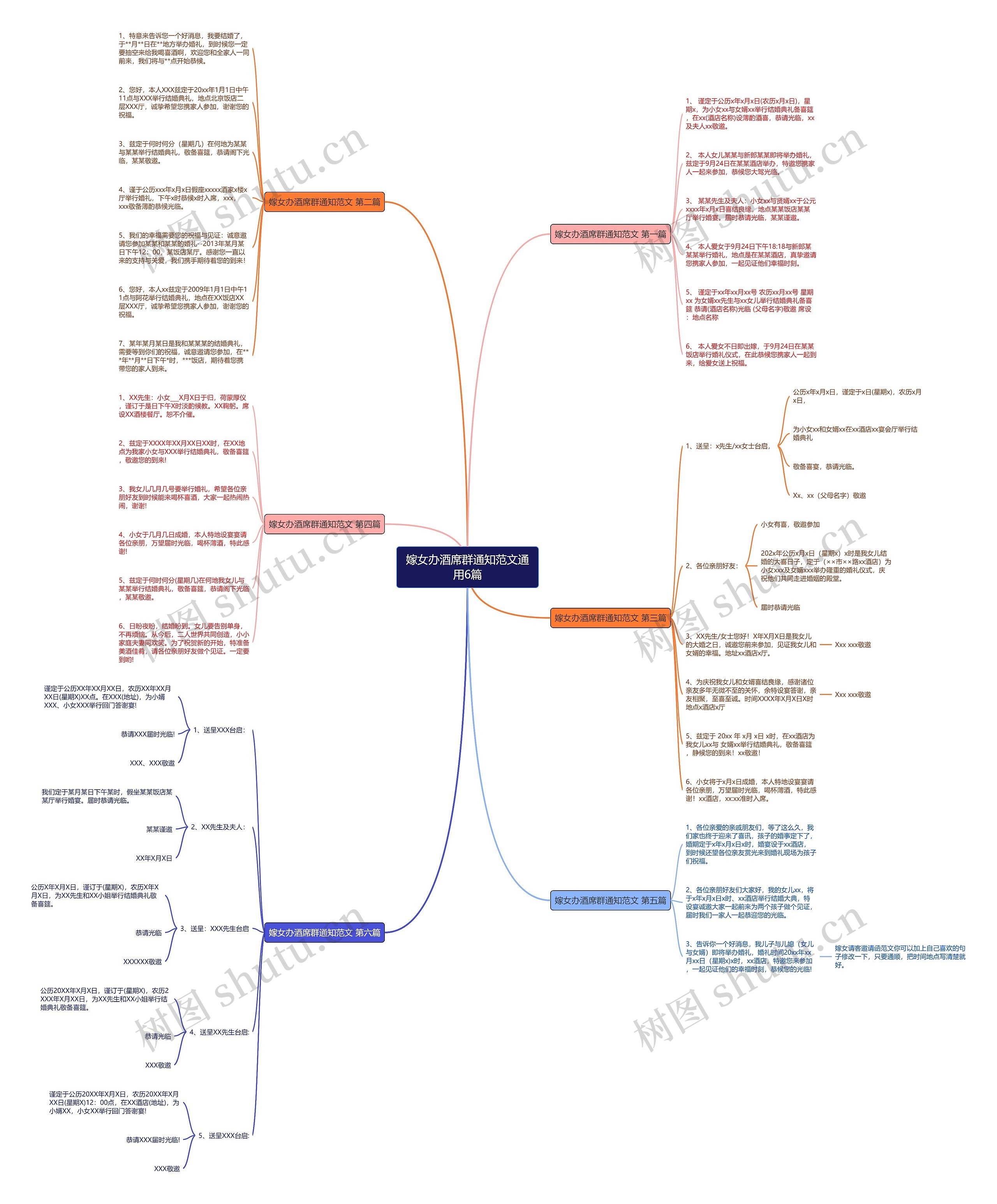 树图思维导图提供《嫁女办酒席群通知范文通用6篇》在线思维导图免费制作,点击“编辑”按钮,可对《嫁女办酒席群通知范文通用6篇》进行在线思维导图编辑,本思维导图属于思维导图模板主题,文件编号是:b250e15a43d73762ec632b862c1dd477