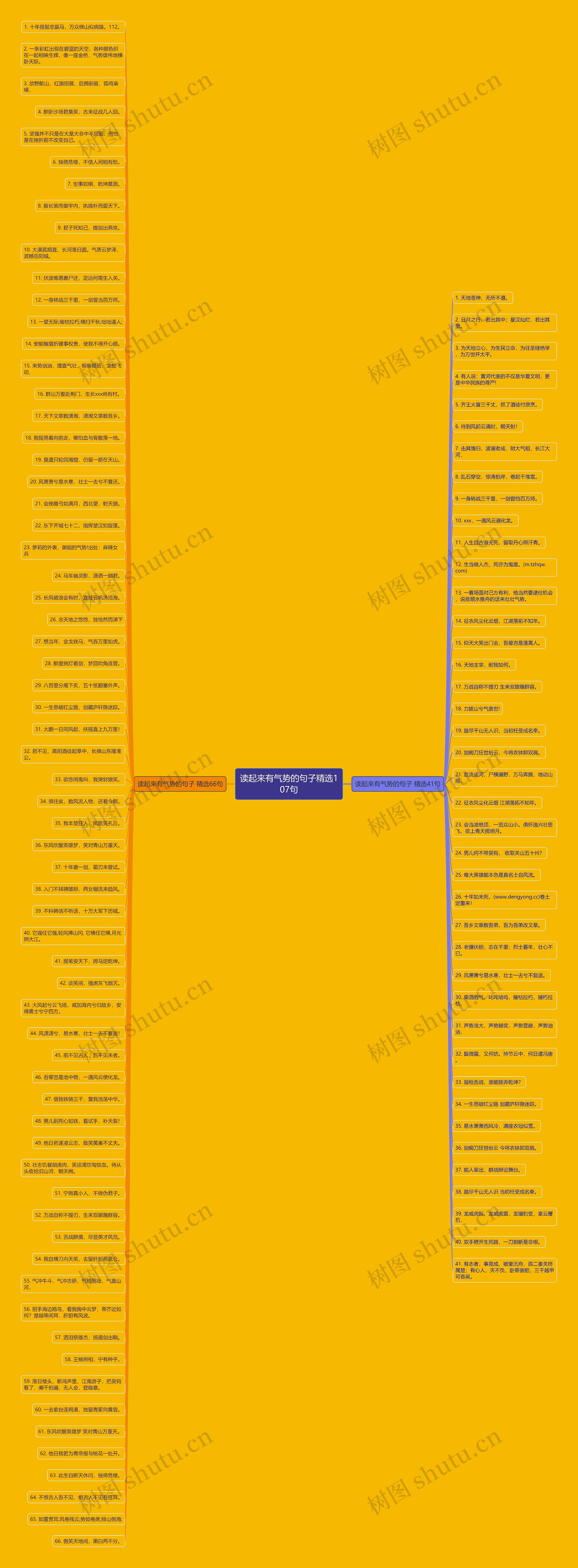 树图思维导图提供《读起来有气势的句子精选107句》在线思维导图免费制作,点击“编辑”按钮,可对《读起来有气势的句子精选107句》进行在线思维导图编辑,本思维导图属于思维导图模板主题,文件编号是:0792d14da7a5259c804ee5779eca6ceb