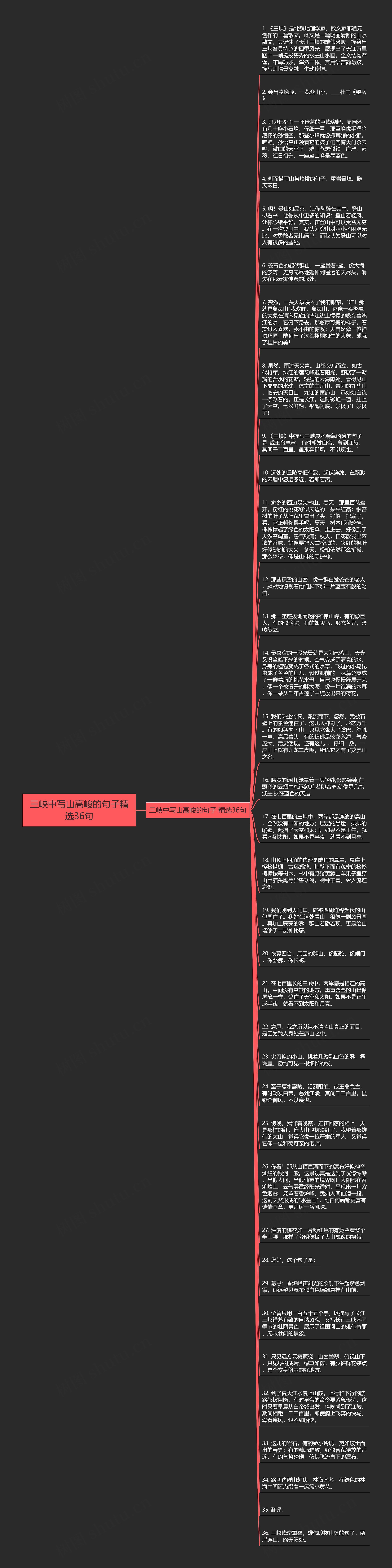 36. 三峡峰峦重叠,雄伟峻拔山势的句子:两岸连山、略无阙处。