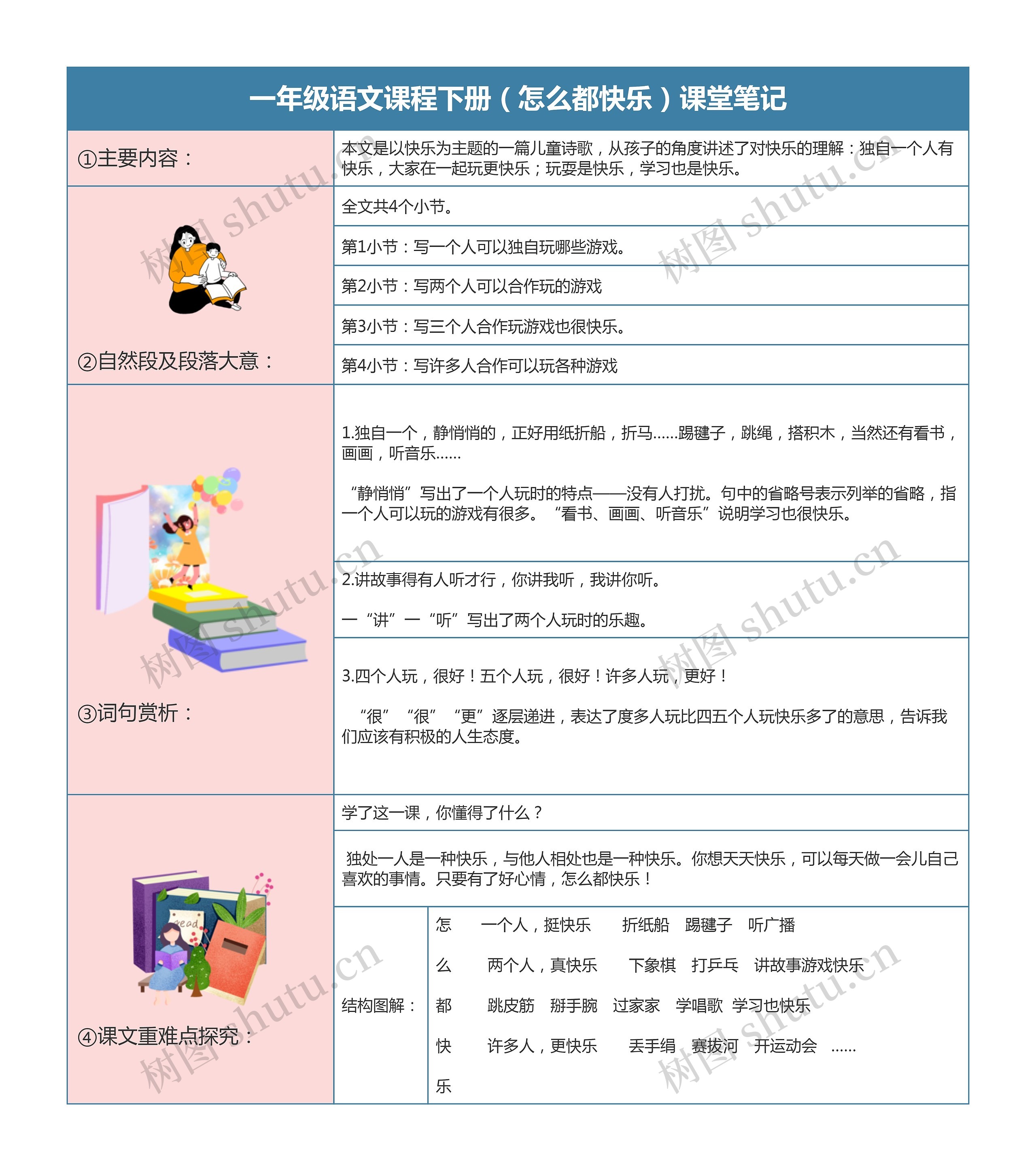 讲述了一年级语文课程下册(怎么都快乐)课堂笔记的内容