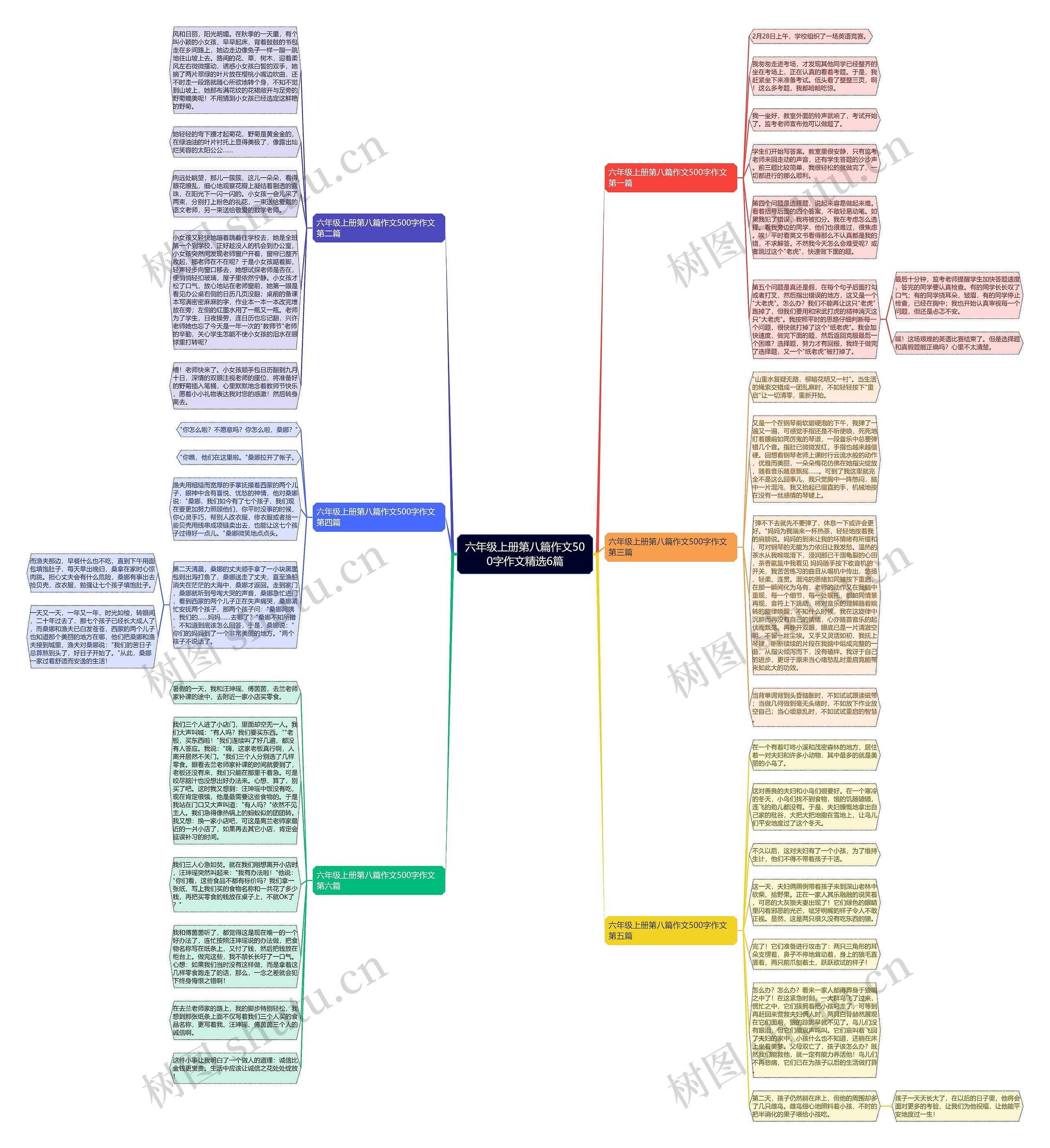 树图思维导图提供《六年级上册第八篇作文500字作文精选6篇》在线思维导图免费制作,点击“编辑”按钮,可对《六年级上册第八篇作文500字作文精选6篇》进行在线思维导图编辑,本思维导图属于思维导图模板主题,文件编号是:fd2f92889918babb8d5602be79f9bf54