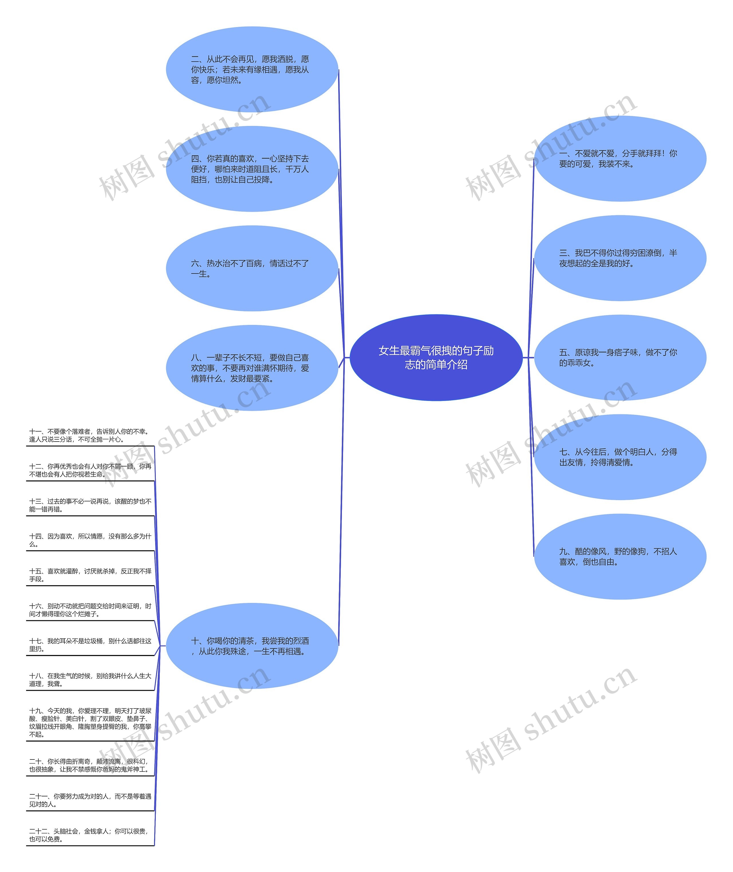 树图思维导图提供《女生最霸气很拽的句子励志的简单介绍》在线思维导图免费制作,点击“编辑”按钮,可对《女生最霸气很拽的句子励志的简单介绍》进行在线思维导图编辑,本思维导图属于思维导图模板主题,文件编号是:b28a964a653eb951fce1927690abc00c