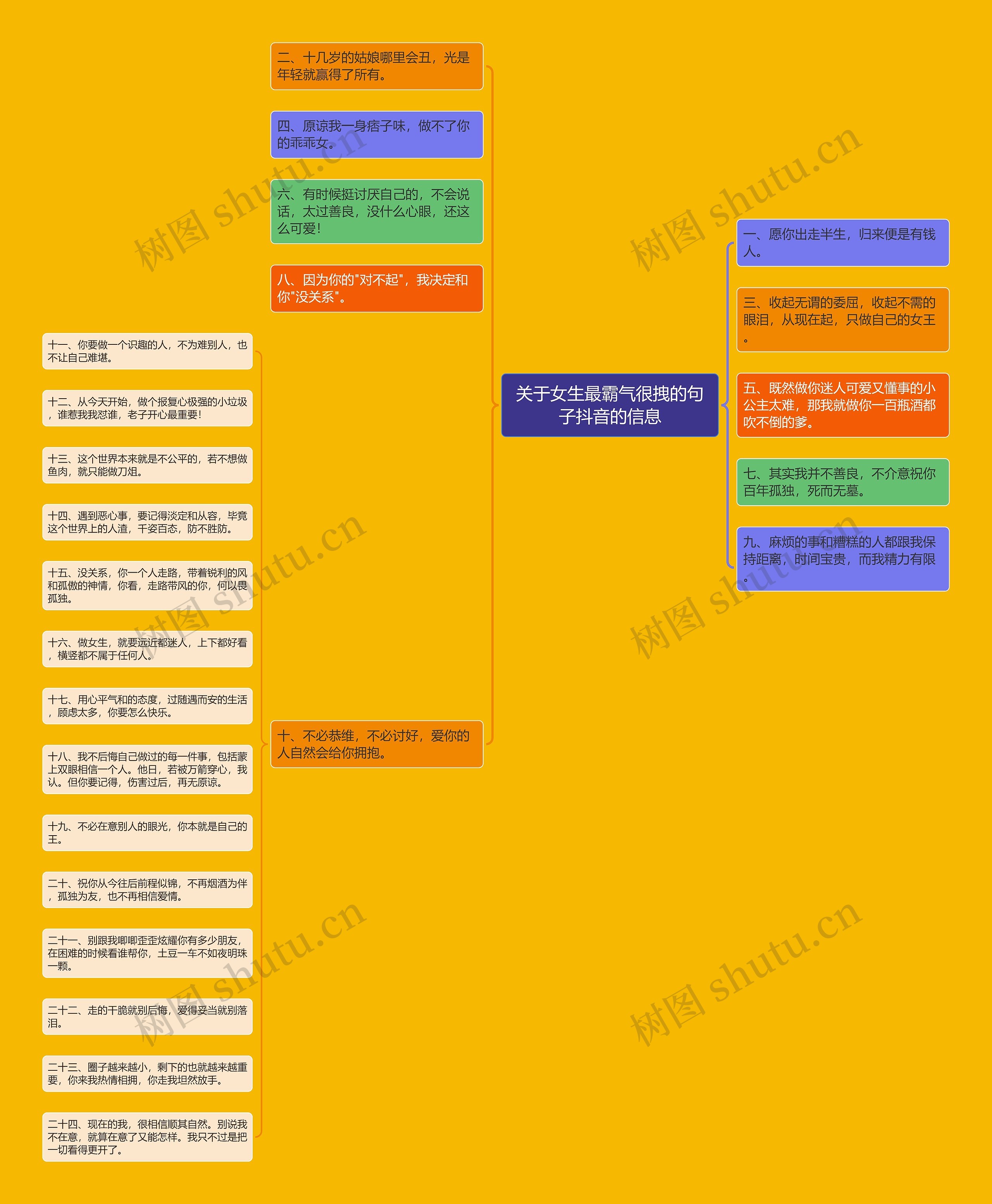 树图思维导图提供《关于女生最霸气很拽的句子抖音的信息》在线思维导图免费制作,点击“编辑”按钮,可对《关于女生最霸气很拽的句子抖音的信息》进行在线思维导图编辑,本思维导图属于思维导图模板主题,文件编号是:ed2e4b3da98b897e9f3573f37ca43545