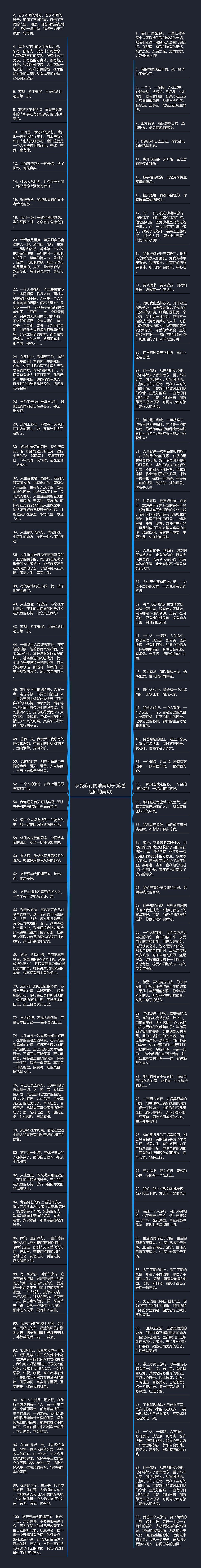 32、人生就像是一场旅行,遇到的既有感人的,也有伤心的,既有令人兴奋的,也有令人灰心的,既有美妙的风景,也会有称不上景、只有风的地方。人生就是要感受美丽的、善良的,丑恶的、病态的。而只有在充满了艰辛的人生旅途中,始终调整好自己观风景的心态,才能做到人在旅途,感悟人生,享受人生。