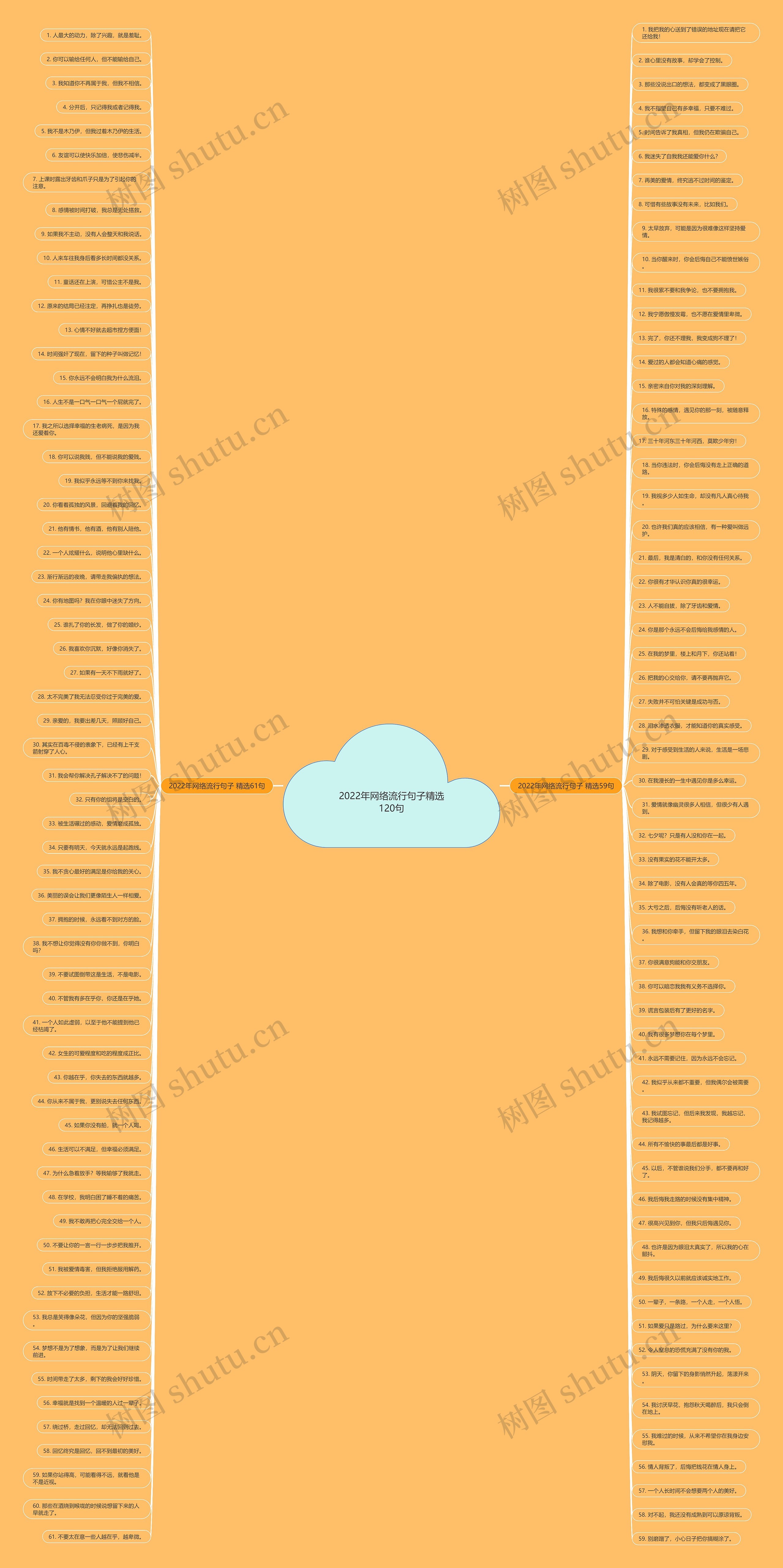 树图思维导图提供《2022年网络流行句子精选120句》在线思维导图免费制作,点击“编辑”按钮,可对《2022年网络流行句子精选120句》进行在线思维导图编辑,本思维导图属于思维导图模板主题,文件编号是:242d4372d0040477f57ecd243611c2f8