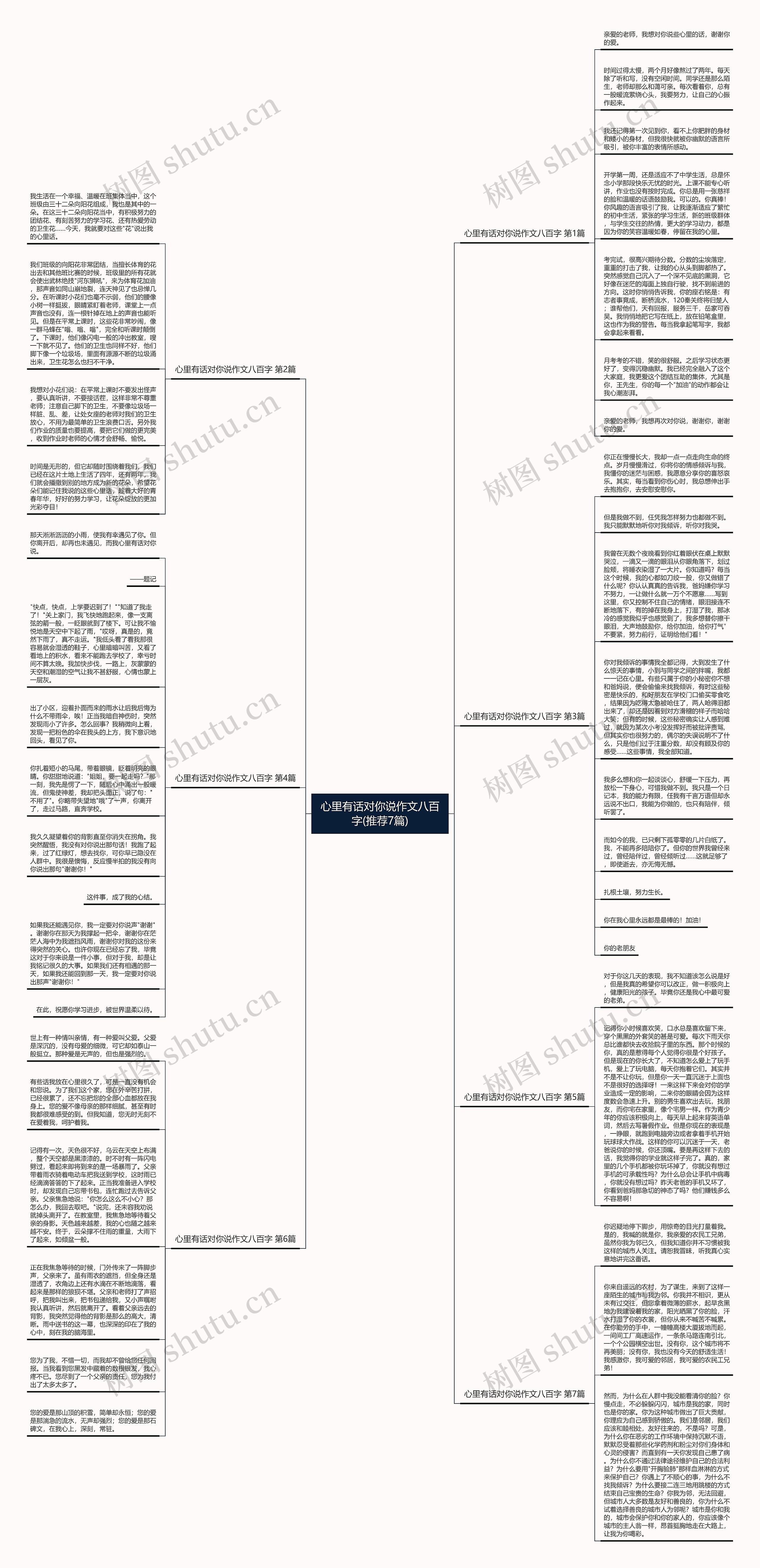 你对我倾诉的事情我全都记得,大到发生了什么惊天的事情,小到与同学之间的拌嘴,我都一一记在心里。有些只属于你的小秘密你不想和爸妈说,便会偷偷来找我倾诉,有时这些秘密是快乐的,和好朋友在学校门口偷买零食吃,结果因为吃得太急被呛住了,两人呛得泪都出来了,却还是因看到对方滑稽的样子而哈哈大笑;但有的时候,这些秘密确实让人感到难过,就因为某次小考没发挥好而被批评责骂,但其实你也很努力的,偶尔的失误说明不了什么,只是他们过于注重分数,却没有顾及你的感受……这些事情,我全部知道。