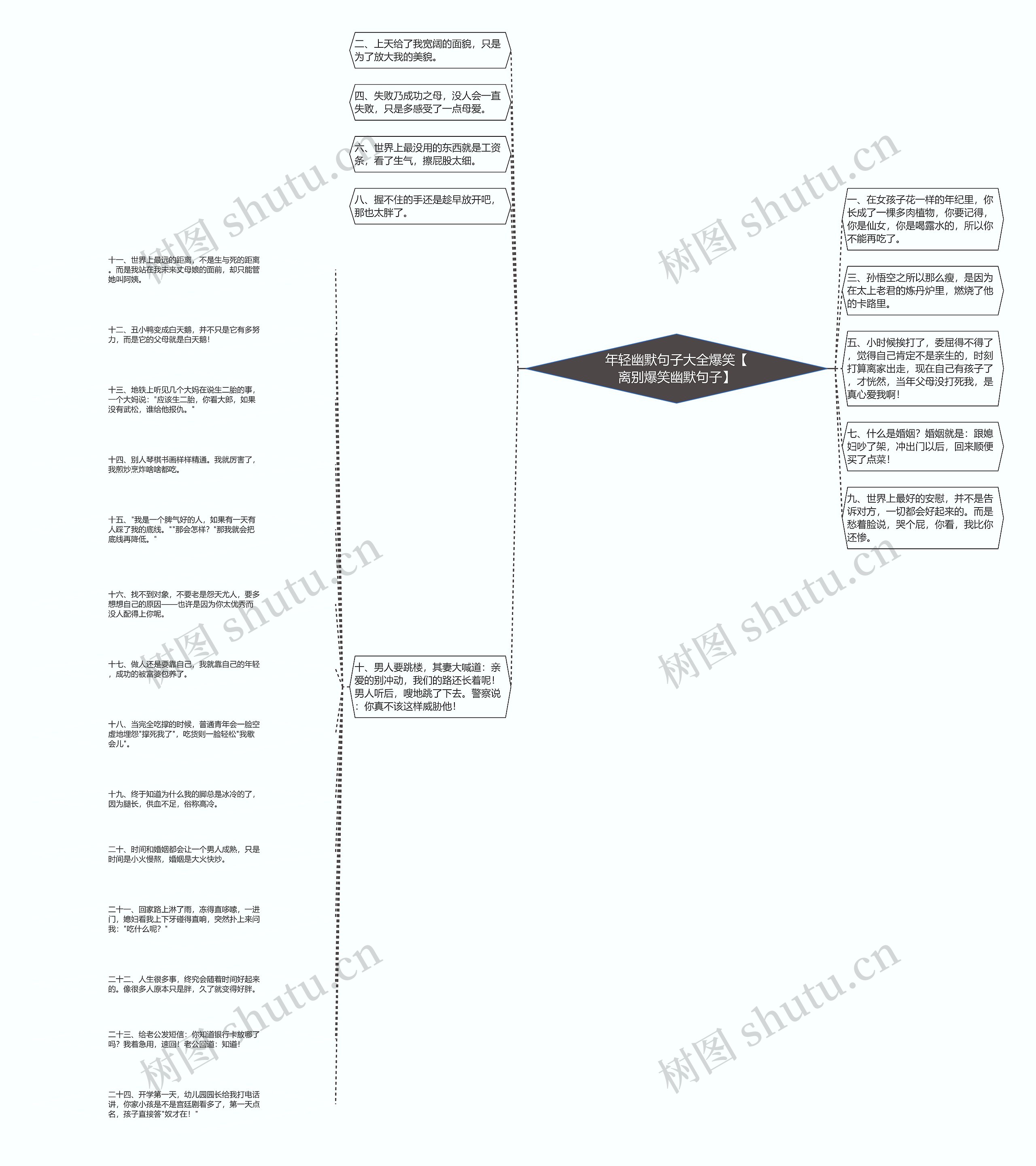 树图思维导图提供《年轻幽默句子大全爆笑【离别爆笑幽默句子】》在线思维导图免费制作,点击“编辑”按钮,可对《年轻幽默句子大全爆笑【离别爆笑幽默句子】》进行在线思维导图编辑,本思维导图属于思维导图模板主题,文件编号是:decc0a3f13da22fd2a369564b9278725