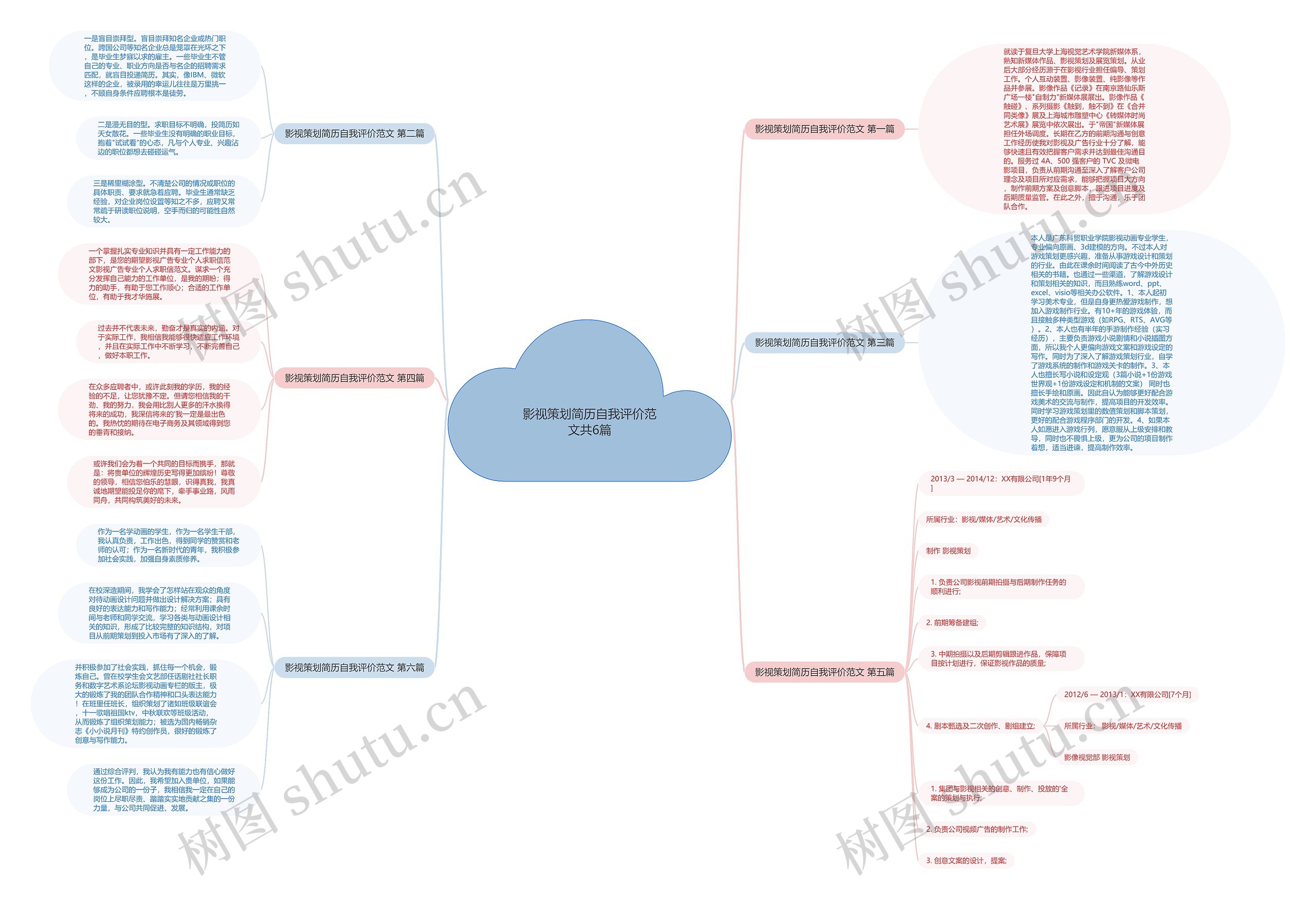 树图思维导图提供《影视策划简历自我评价范文共6篇》在线思维导图免费制作,点击“编辑”按钮,可对《影视策划简历自我评价范文共6篇》进行在线思维导图编辑,本思维导图属于思维导图模板主题,文件编号是:b5ae519fb46a669516799015d2bb8c48