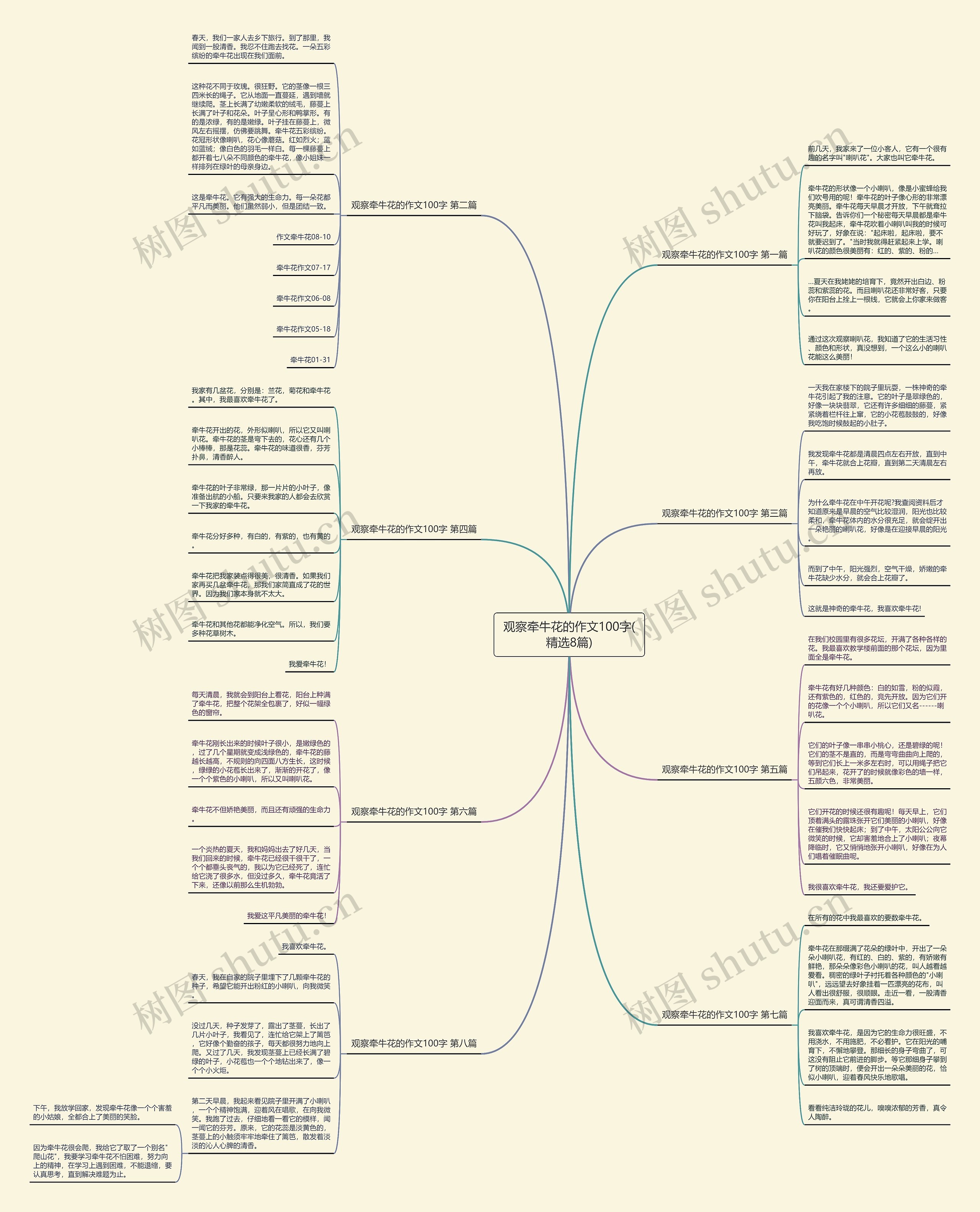 树图思维导图提供《观察牵牛花的作文100字(精选8篇)》在线思维导图免费制作,点击“编辑”按钮,可对《观察牵牛花的作文100字(精选8篇)》进行在线思维导图编辑,本思维导图属于思维导图模板主题,文件编号是:661e9d2db1bd17861189140ac9ba81f9