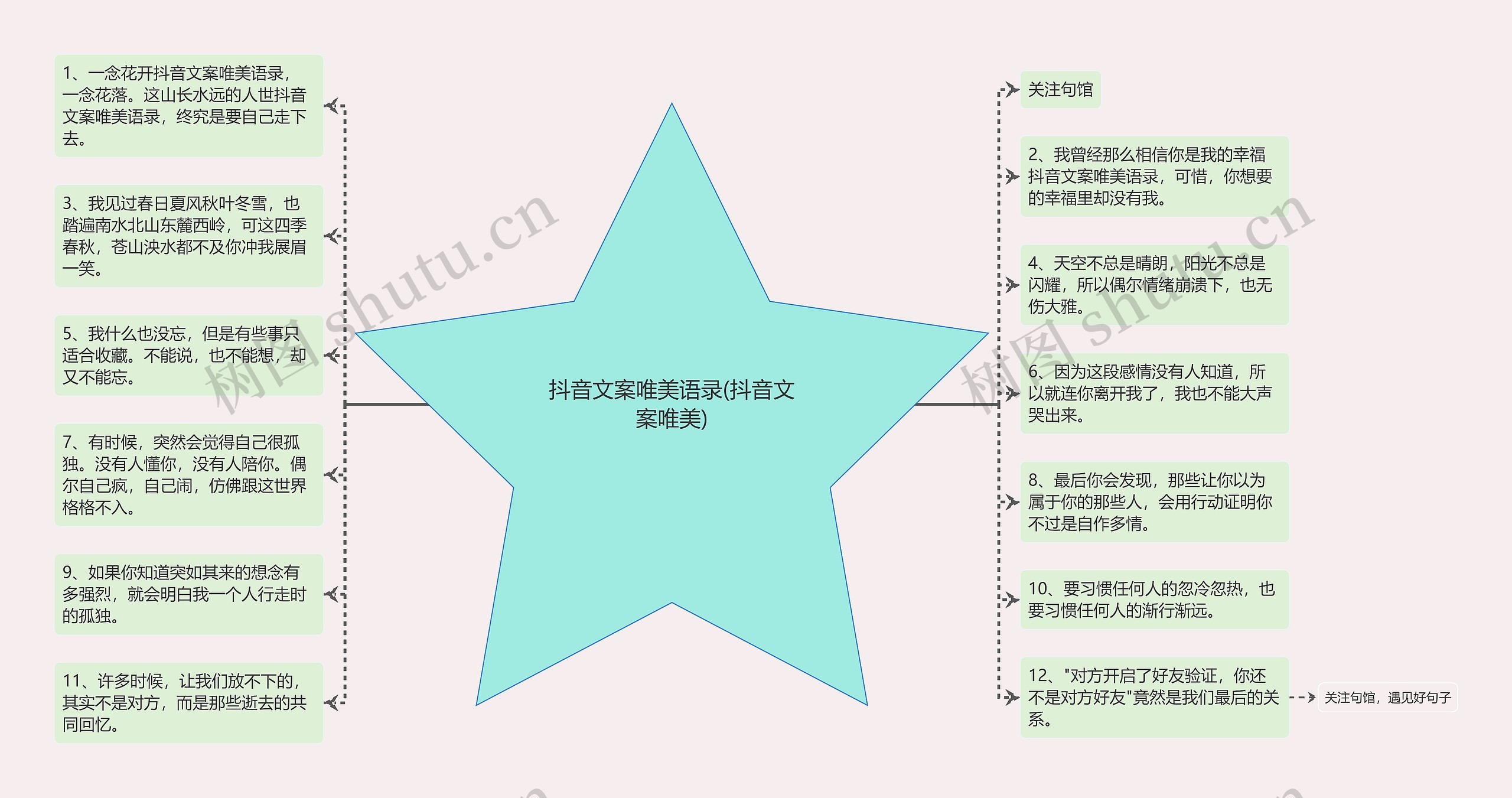 树图思维导图提供《抖音文案唯美语录(抖音文案唯美)》在线思维导图免费制作,点击“编辑”按钮,可对《抖音文案唯美语录(抖音文案唯美)》进行在线思维导图编辑,本思维导图属于思维导图模板主题,文件编号是:e26d6b80237842f8a8015cd51d457958