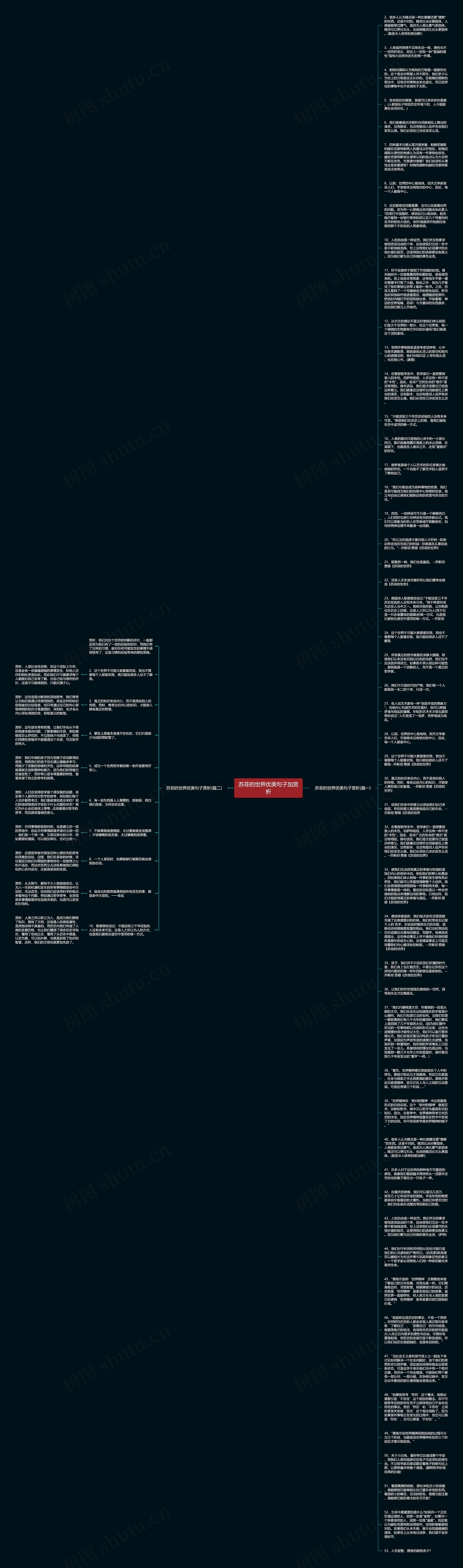 45、"黑格尔宣称‘世界精神’正朝着愈来愈了解自己的方向发展,河流也是一样。它们离海愈近时,河面愈宽。根据黑格尔的说法,历史就是‘世界精神’逐渐实现自己的故事。虽然世界一直都存在,但人类文化与人类的发展已经使得‘世界精神’愈来愈意识到它固有的价值。"