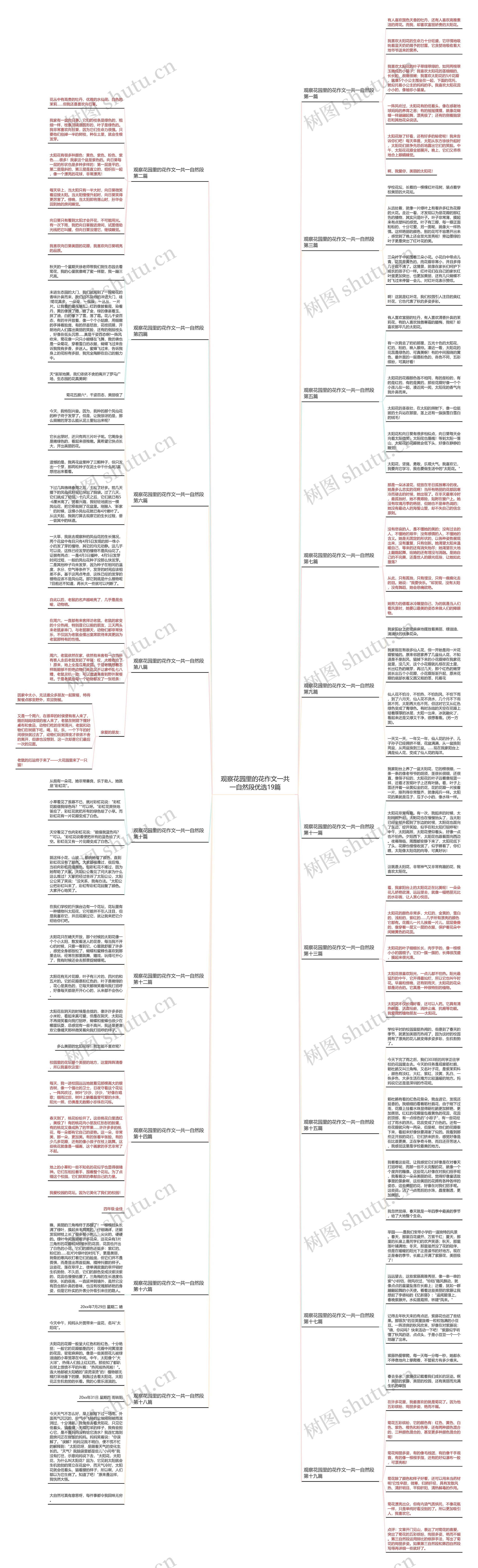 我看着这些花,让我感觉它们好像是在对春天打招呼呢,而那一些不太完整的花,就像一个个废弃的雕像。这些花儿好像在对我们招手呢,我看着这一朵朵美丽的花,觉得好像童话故事里的景象啊,这些美丽的花拥有各种各样的姿态,这些美丽的花,好像在对我们招手呢。这些花,沾了一点雨后的水珠,晶莹剔透,更加美丽。