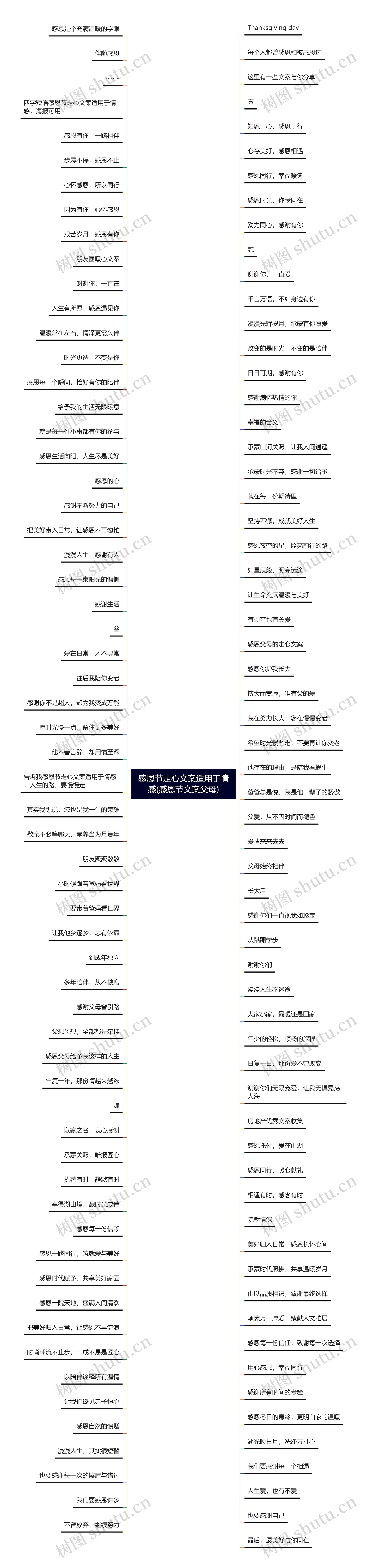 树图思维导图提供《感恩节走心文案适用于情感(感恩节文案父母)》在线思维导图免费制作,点击“编辑”按钮,可对《感恩节走心文案适用于情感(感恩节文案父母)》进行在线思维导图编辑,本思维导图属于思维导图模板主题,文件编号是:fadbbce8dd9477abc2a003ab1099fd6c