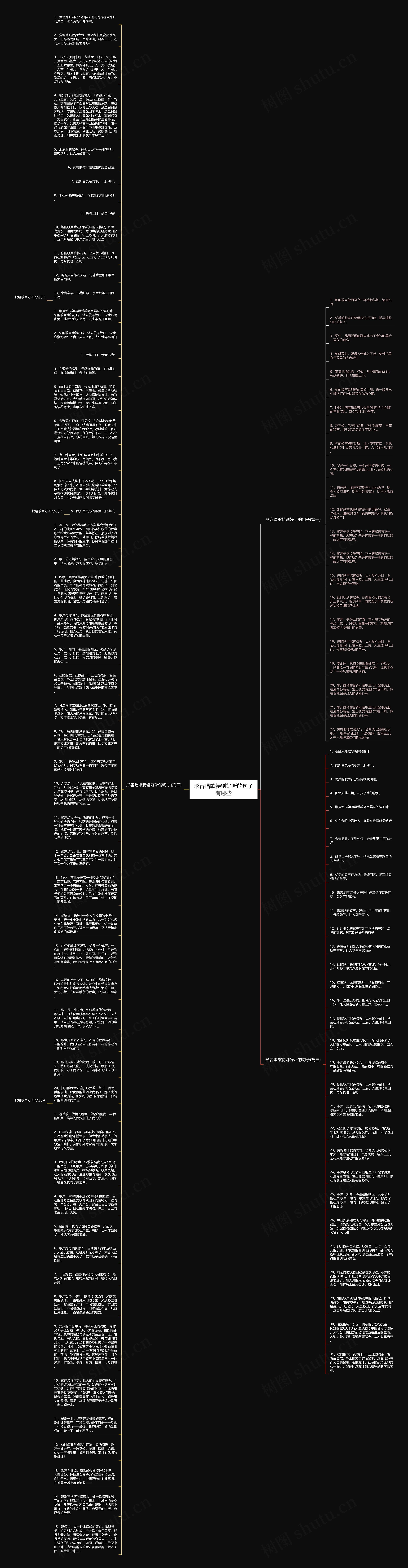 18、歌声是多姿多态的,不同的歌有着不一样的韵味,我们听起来是有着不一样的感觉的,酸甜苦辣咸都有。