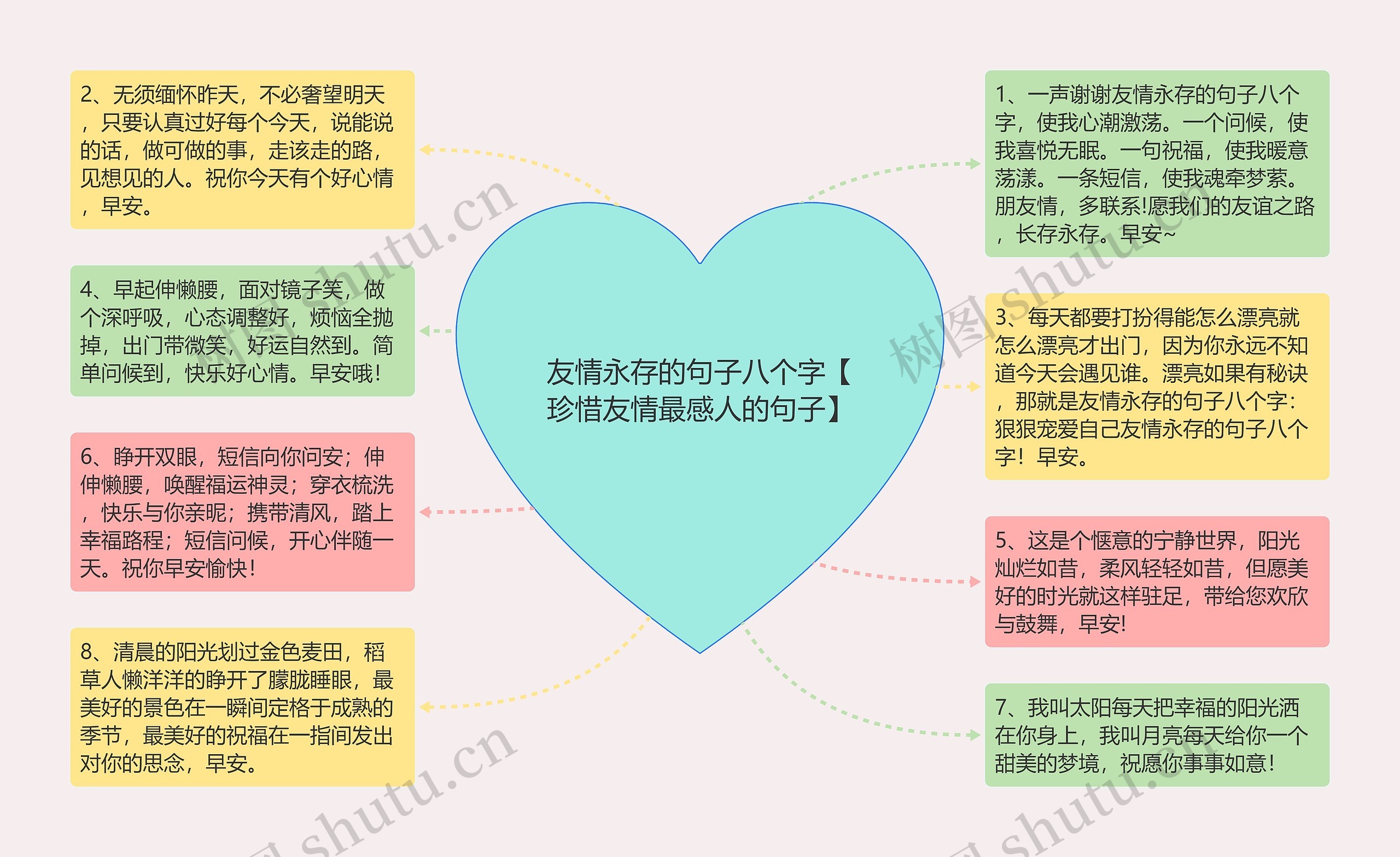 树图思维导图提供《友情永存的句子八个字【珍惜友情最感人的句子】》在线思维导图免费制作,点击“编辑”按钮,可对《友情永存的句子八个字【珍惜友情最感人的句子】》进行在线思维导图编辑,本思维导图属于思维导图模板主题,文件编号是:da6e97036e72992d9c3b3d4d6c4f34a5