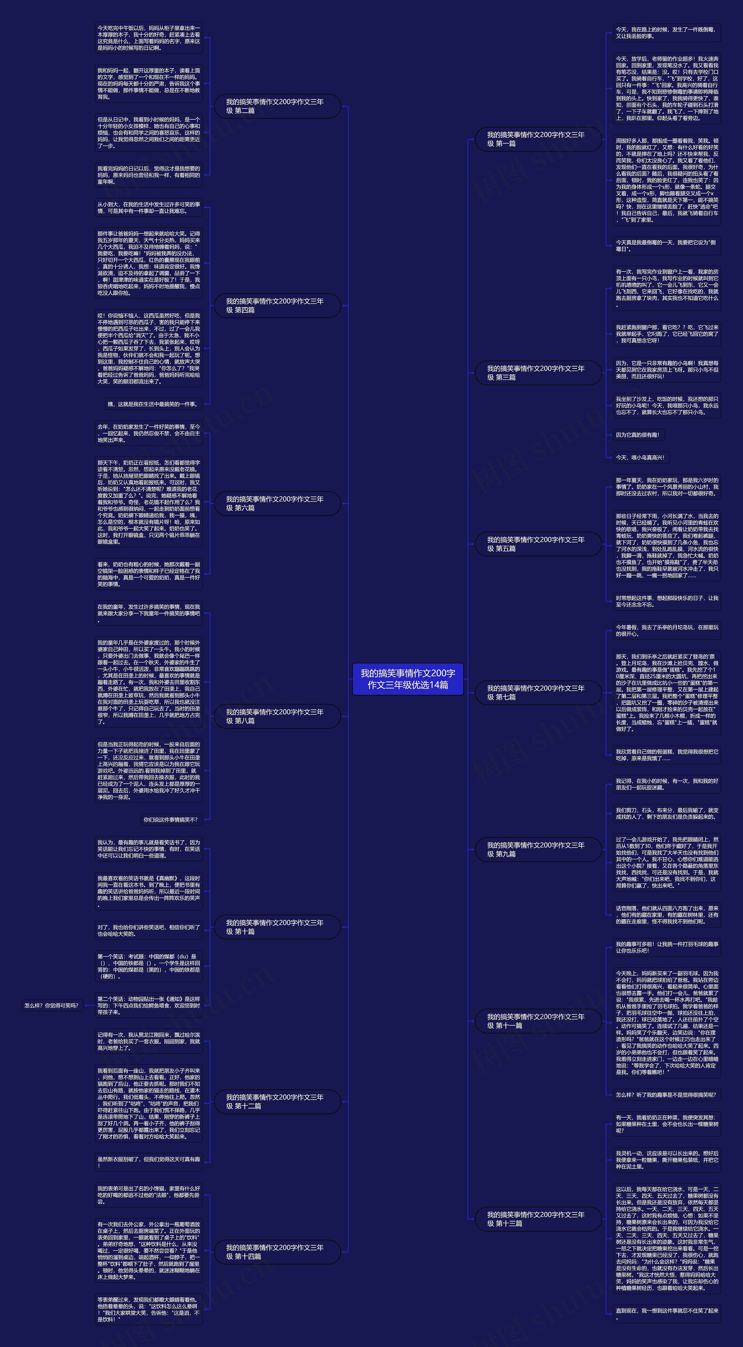 树图思维导图提供《我的搞笑事情作文200字作文三年级优选14篇》在线思维导图免费制作,点击“编辑”按钮,可对《我的搞笑事情作文200字作文三年级优选14篇》进行在线思维导图编辑,本思维导图属于思维导图模板主题,文件编号是:b331b3e383b85770ec47f76cb1e377dd