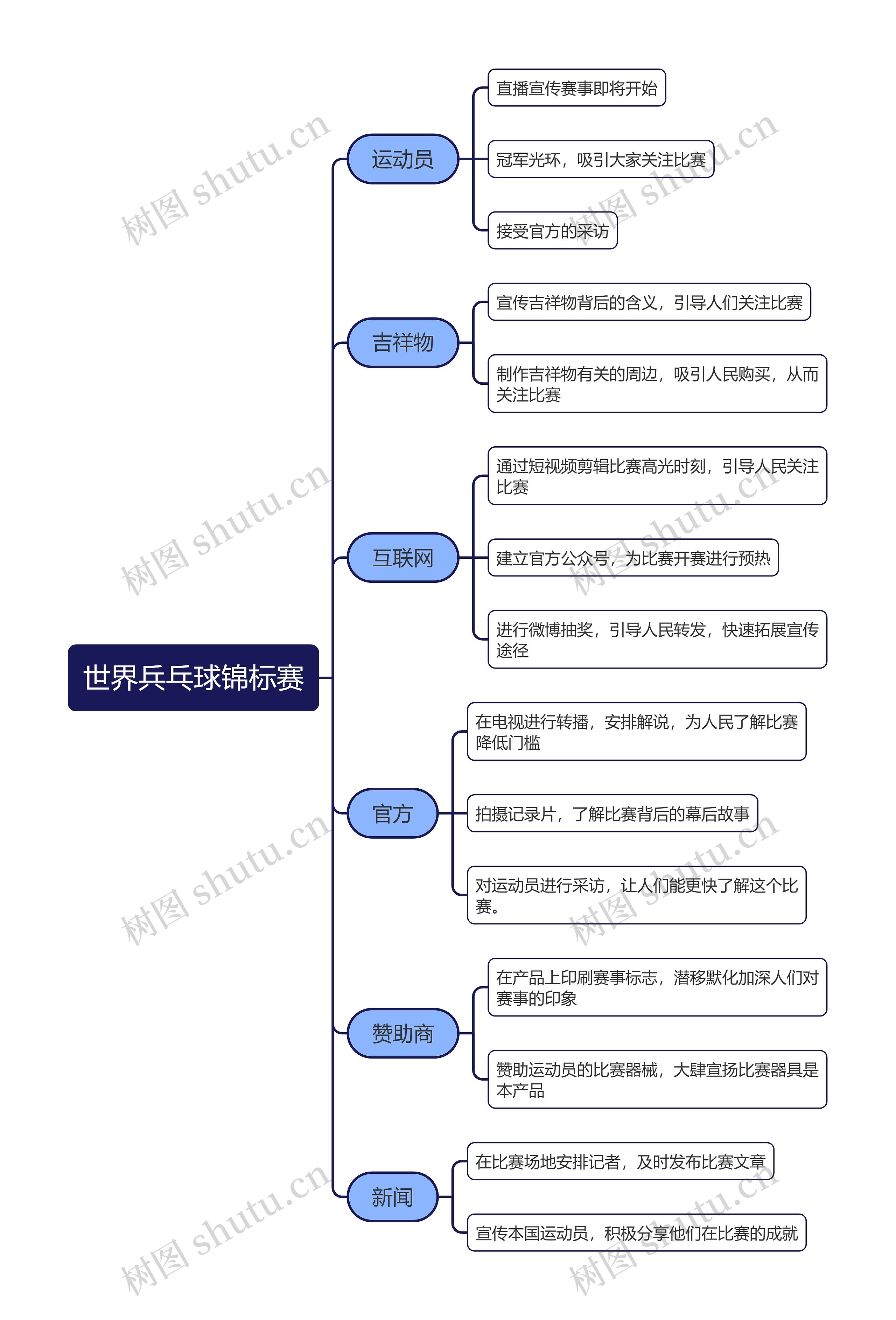 树图思维导图提供《世界兵乓球锦标赛思维导图》在线思维导图免费制作,点击“编辑”按钮,可对《世界兵乓球锦标赛思维导图》进行在线思维导图编辑,本思维导图属于思维导图模板主题,文件编号是:b4319e30a8ad82c77317e51dac27f703