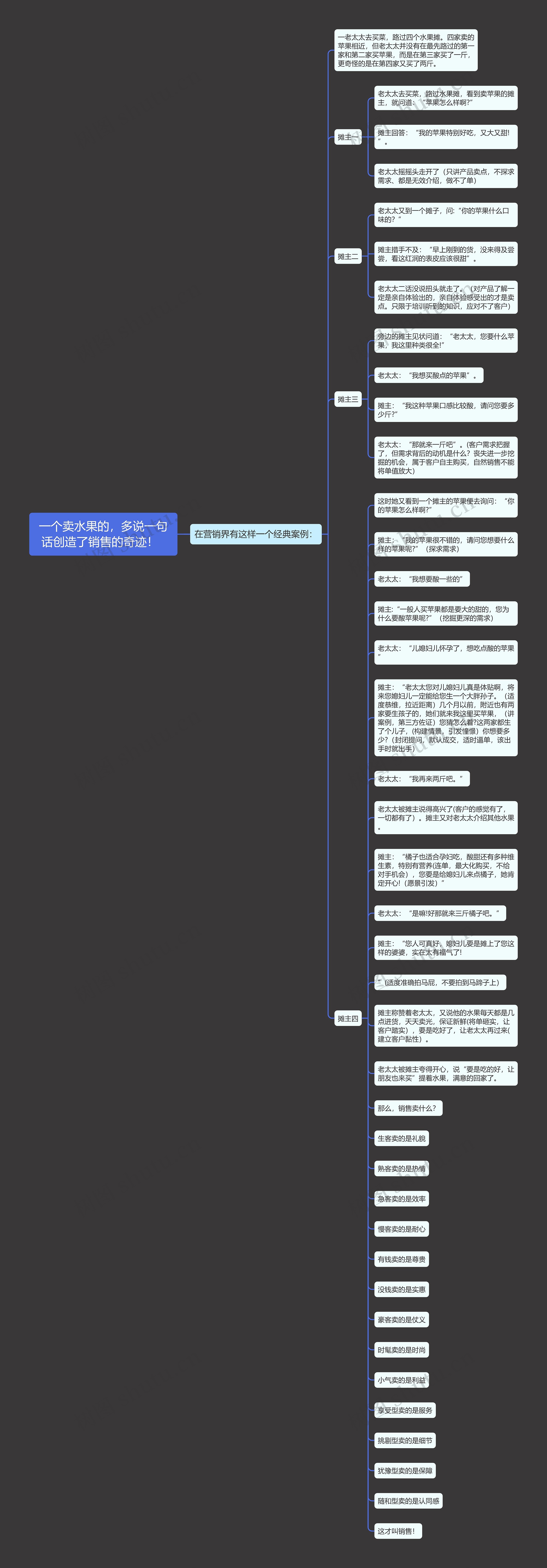 老太太被摊主说得高兴了(客户的感觉有了,一切都有了)。摊主又对老太太介绍其他水果。