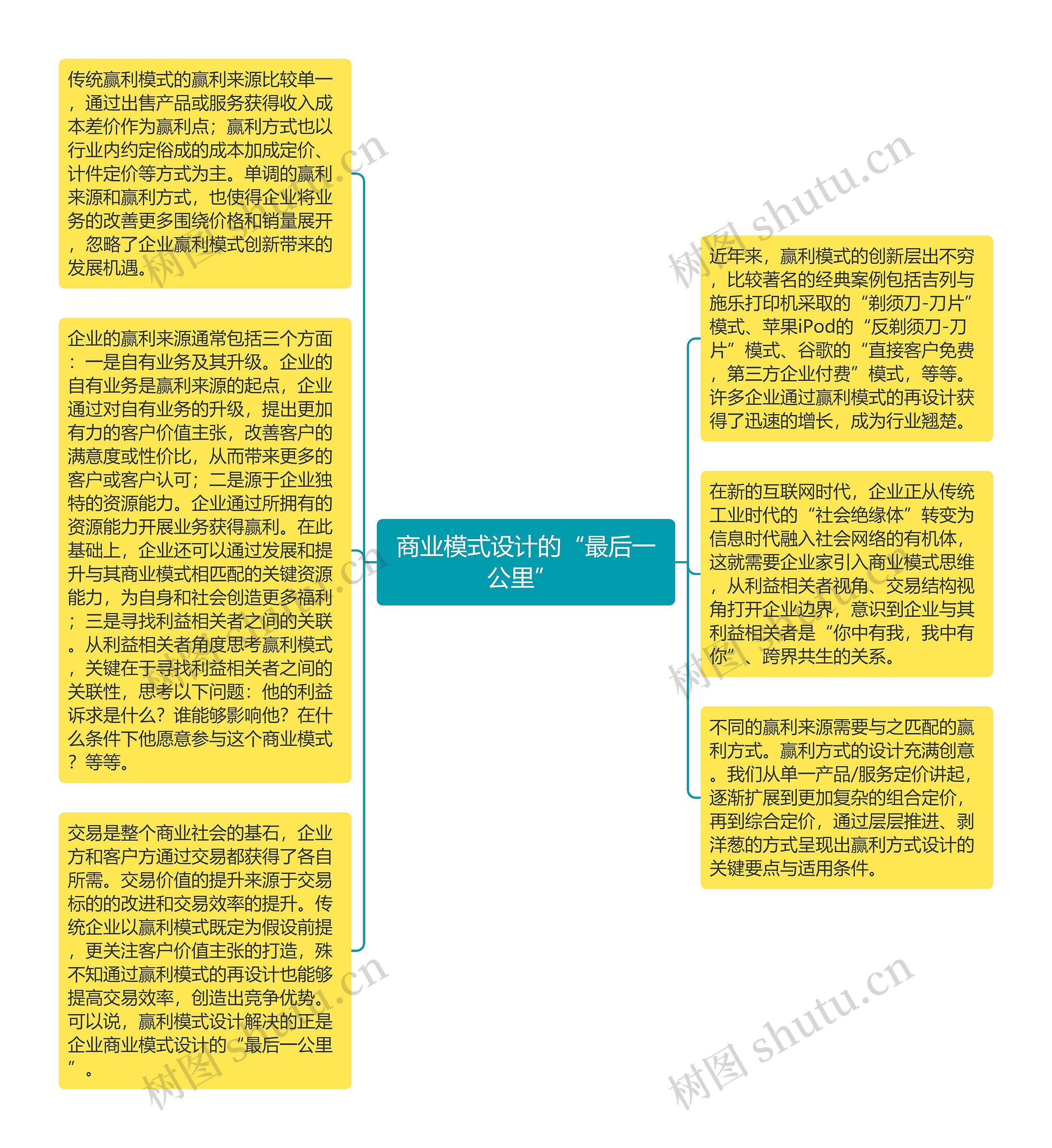 交易是整个商业社会的基石,企业方和客户方通过交易都获得了各自所需。交易价值的提升来源于交易标的的改进和交易效率的提升。传统企业以赢利模式既定为假设前提,更关注客户价值主张的打造,殊不知通过赢利模式的再设计也能够提高交易效率,创造出竞争优势。可以说,赢利模式设计解决的正是企业商业模式设计的“最后一公里”。