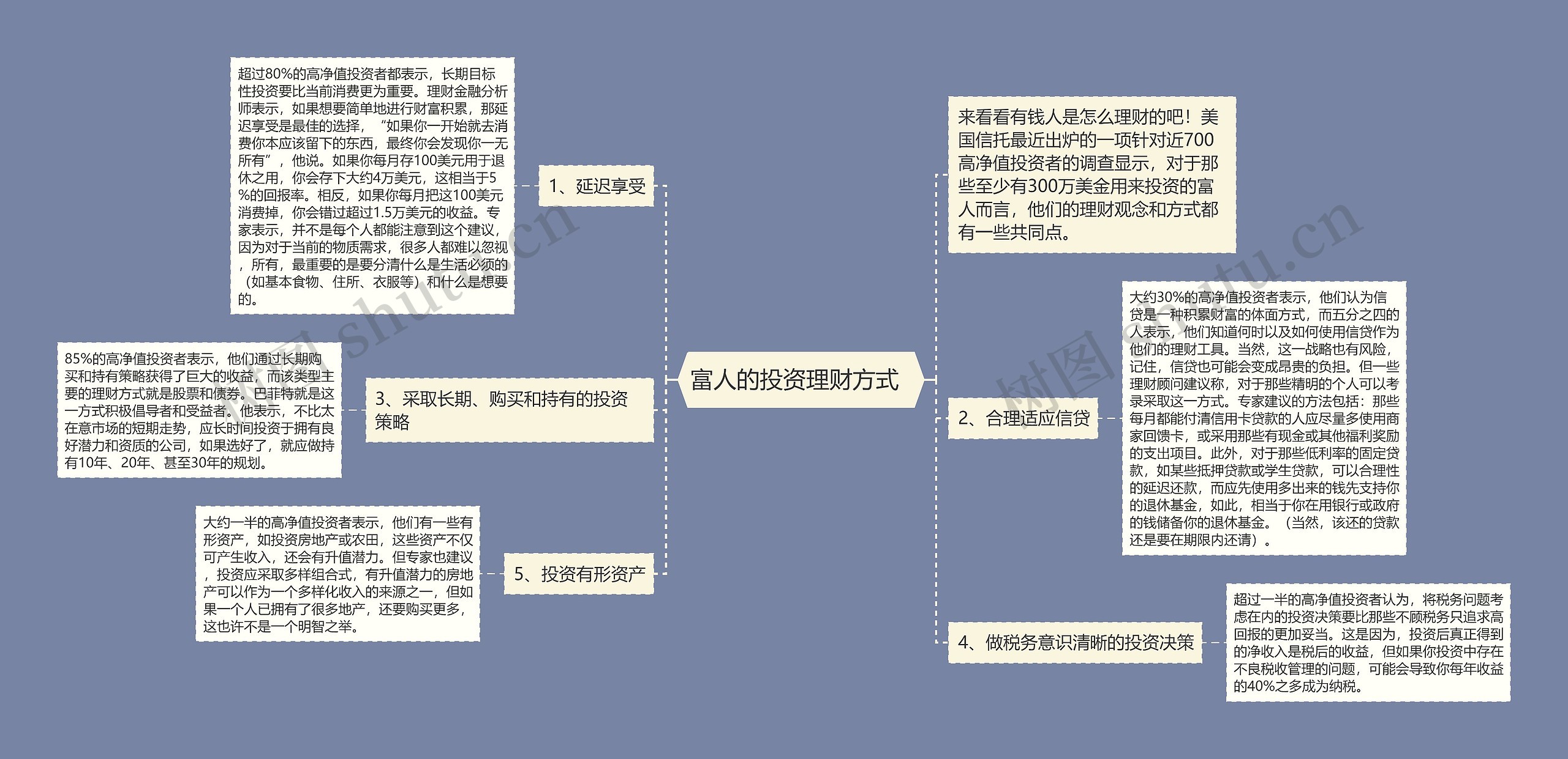 树图思维导图提供《富人的投资理财方式 》在线思维导图免费制作,点击“编辑”按钮,可对《富人的投资理财方式 》进行在线思维导图编辑,本思维导图属于思维导图模板主题,文件编号是:8cafb189fa0291f379bb0c763a32f3df