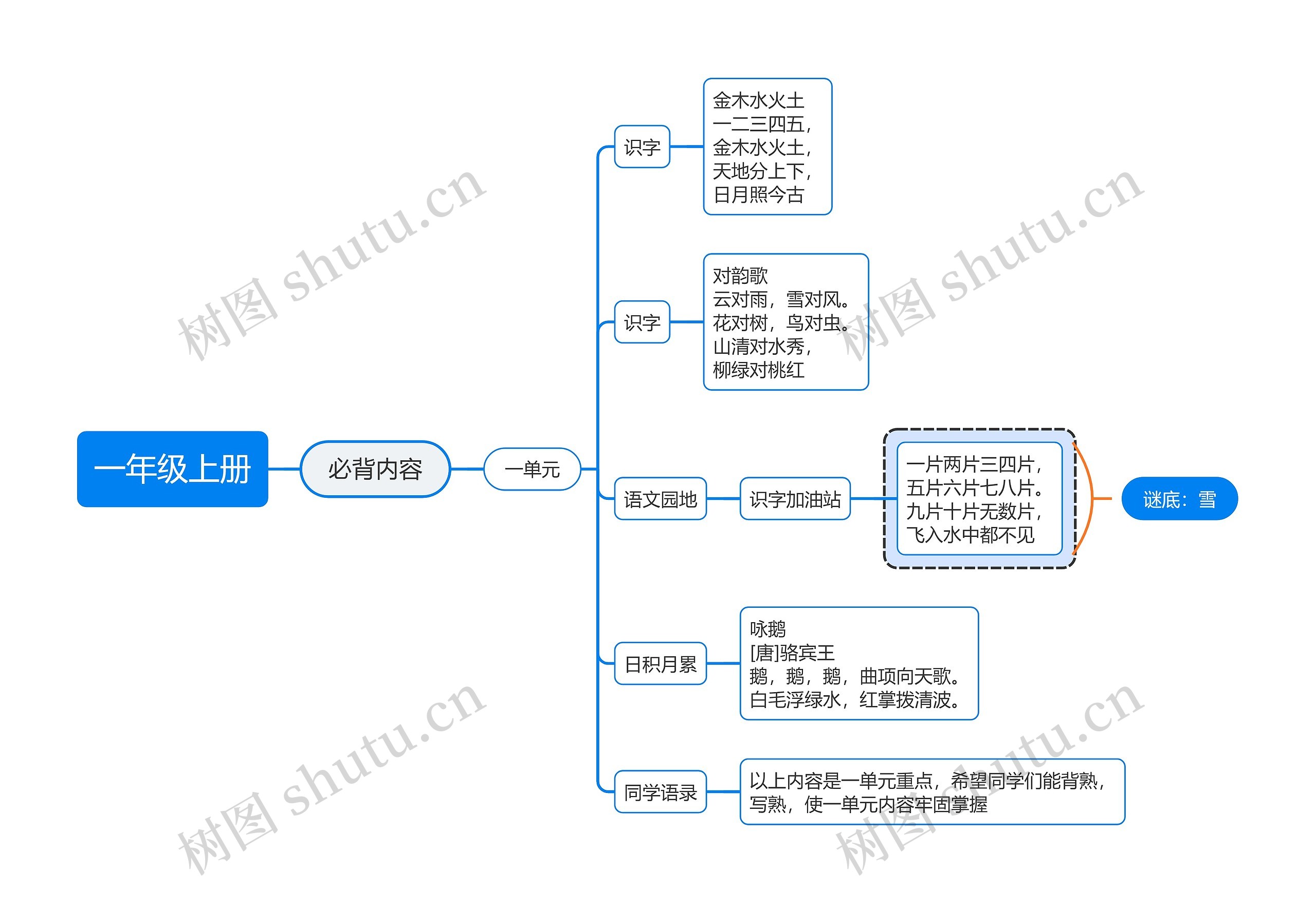 树图思维导图提供《一年级上册第一单元思维导图》在线思维导图免费制作,点击“编辑”按钮,可对《一年级上册第一单元思维导图》进行在线思维导图编辑,本思维导图属于思维导图模板主题,文件编号是:87a7f193a96a7304461070cd41e95521