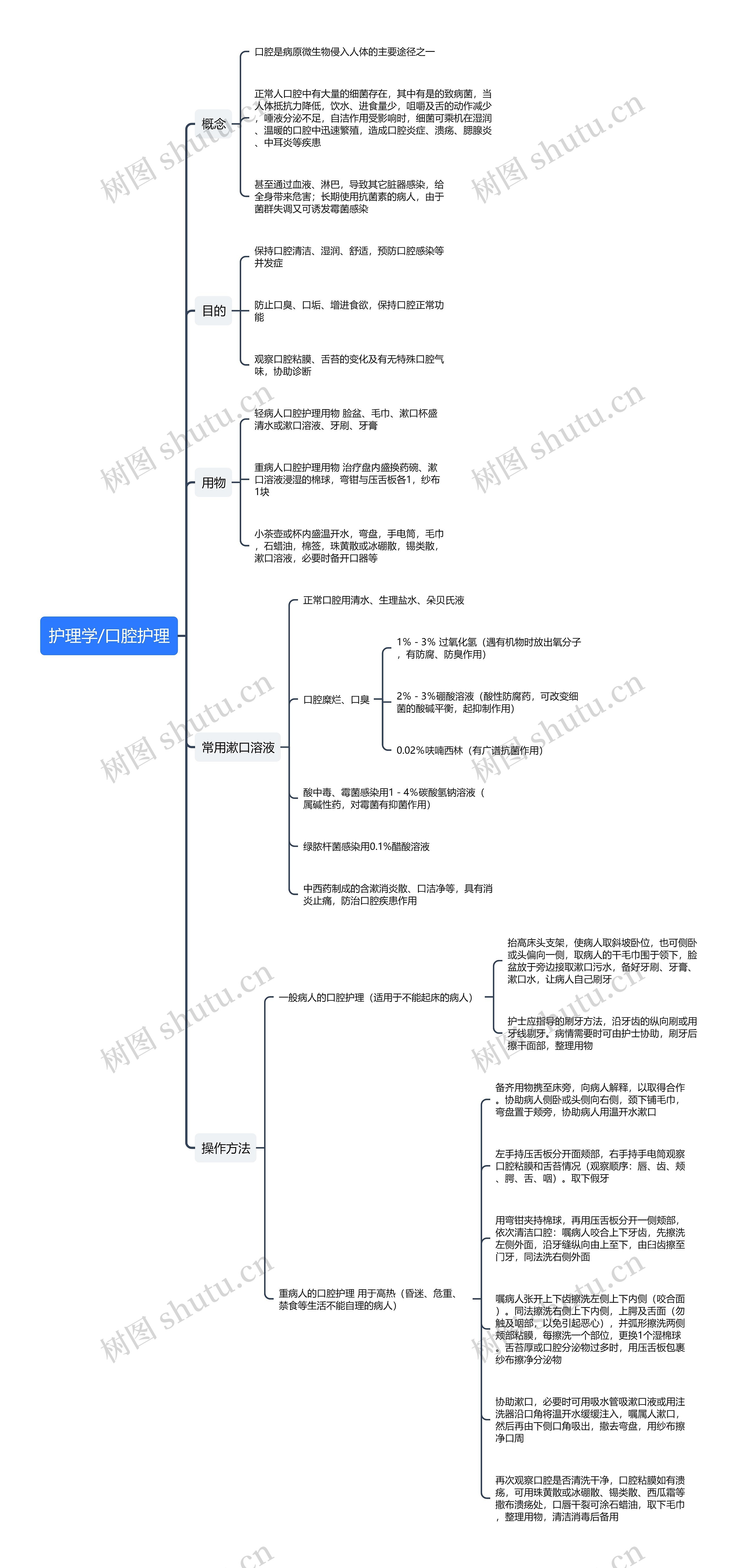 嘱病人张开上下齿擦洗左侧上下内侧(咬合面)。同法擦洗右侧上下内侧,上腭及舌面(勿触及咽部,以免引起恶心),并弧形擦洗两侧颊部粘膜,每擦洗一个部位,更换1个湿棉球。舌苔厚或口腔分泌物过多时,用压舌板包裹纱布擦净分泌物