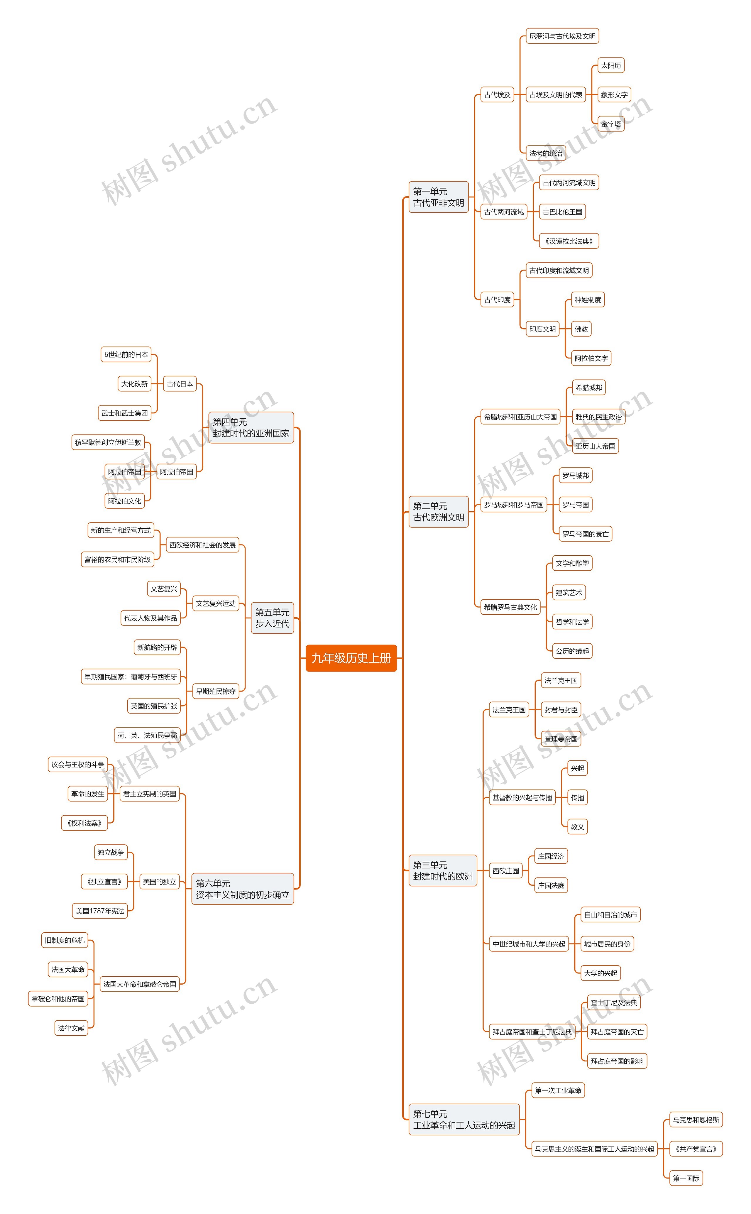 树图思维导图提供《九年级历史上册》在线思维导图免费制作,点击“编辑”按钮,可对《九年级历史上册》进行在线思维导图编辑,本思维导图属于思维导图模板主题,文件编号是:b5c77350758f2c9d9154d3a04f187eaa