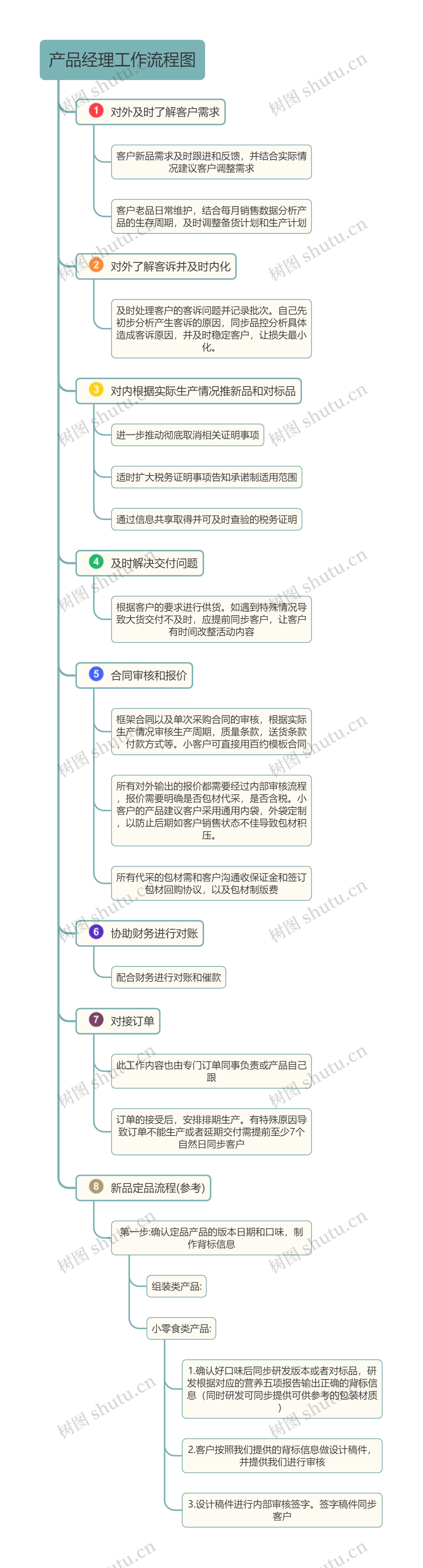 树图思维导图提供《产品经理工作流程图》在线思维导图免费制作,点击“编辑”按钮,可对《产品经理工作流程图》进行在线思维导图编辑,本思维导图属于思维导图模板主题,文件编号是:1cc0b771666aa7987cb0bba37b16fff0