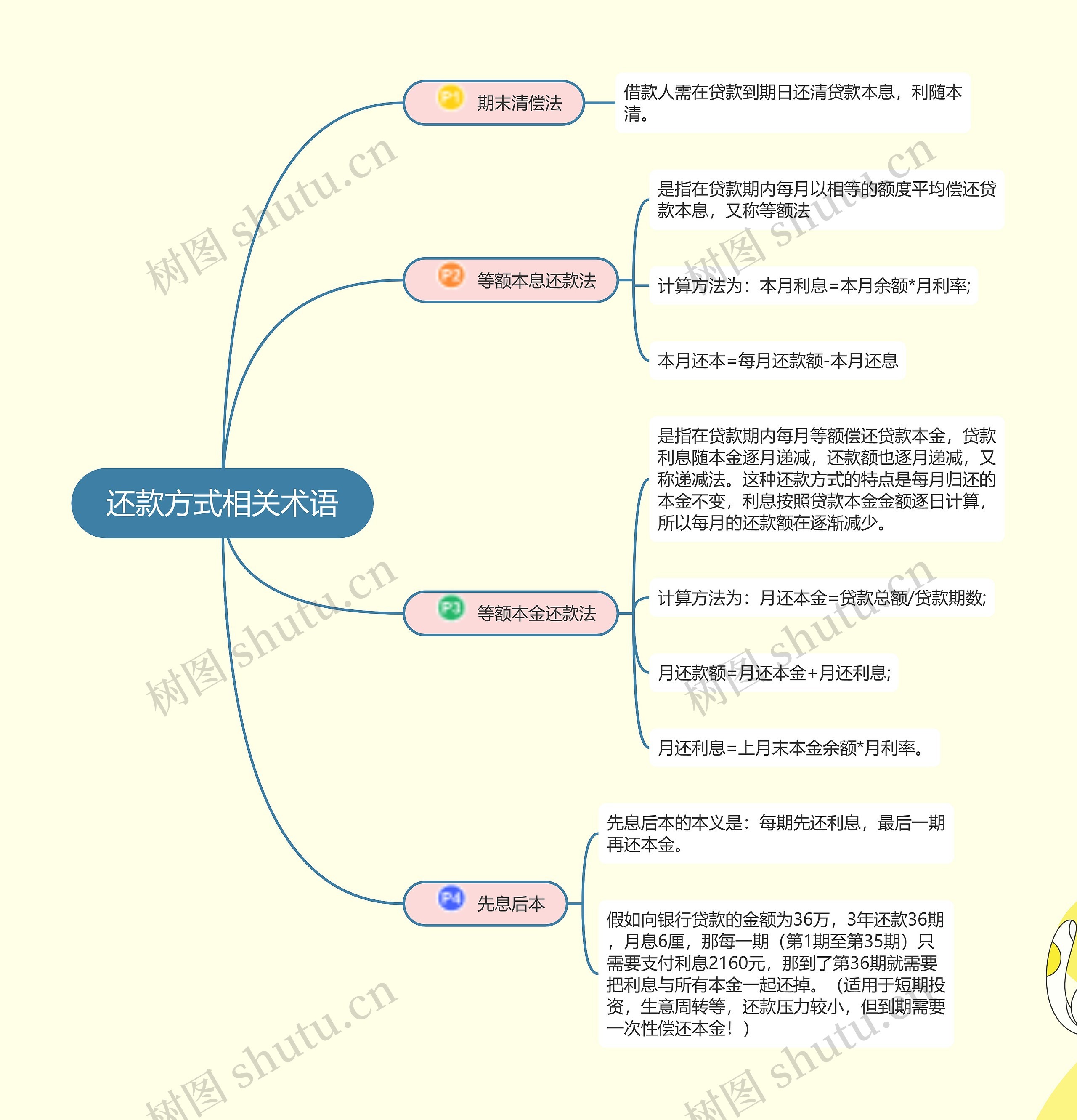 树图思维导图提供《贷款 还款方式相关术语思维导图》在线思维导图免费制作,点击“编辑”按钮,可对《贷款 还款方式相关术语思维导图》进行在线思维导图编辑,本思维导图属于思维导图模板主题,文件编号是:2ec32d2228565d846315553801aa8276